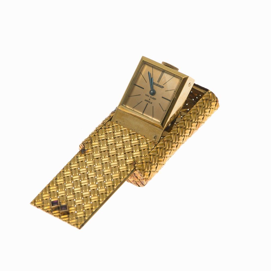 522. Van Cleef & Arpels, Domino, pendulette de poche à décor de vannerie sertie de deux rubis