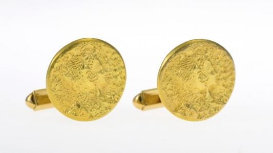 45. Piaget, paire de boutons de manchettes sertis de médailles cisel...