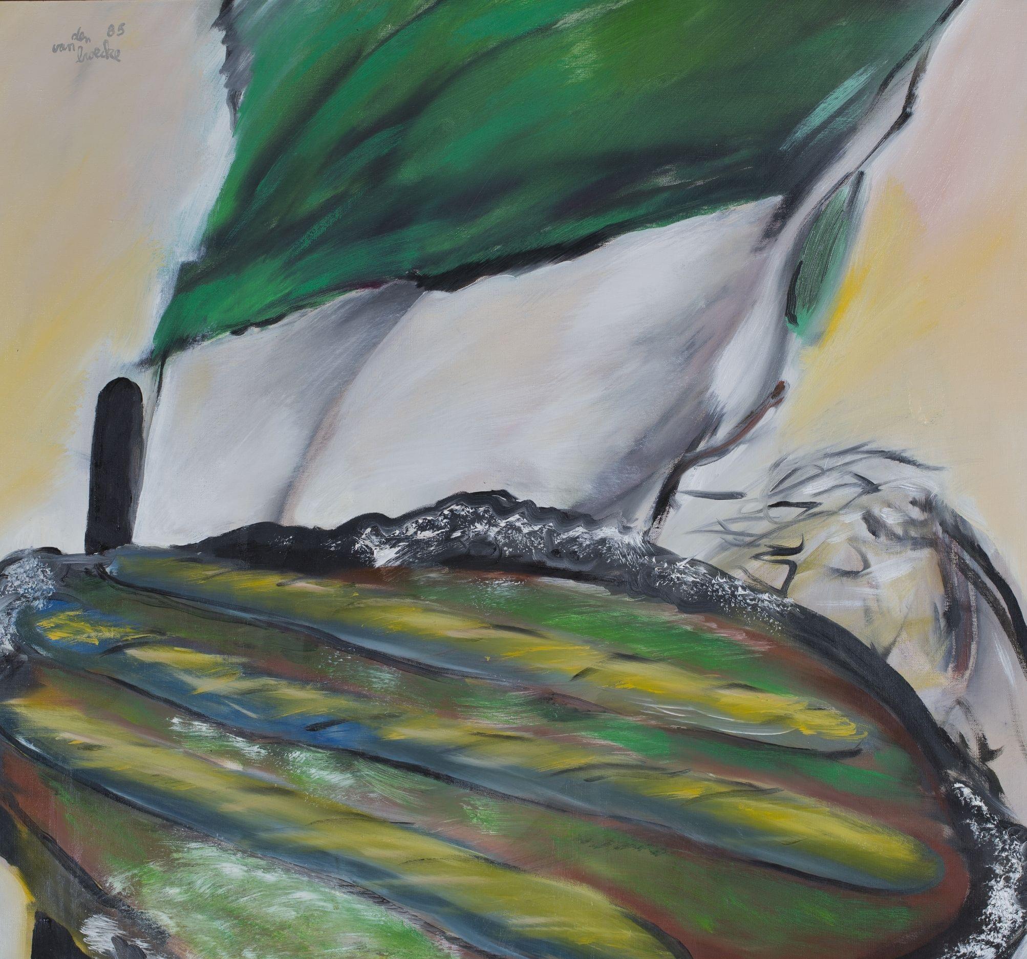 Silhouette verte, huile sur toile, signée et datée 85, 75x81 cm. Collection David Sassoon