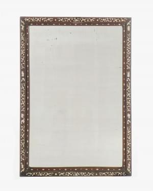 Bois laqué blanc rechampi bleu, glace au mercure, 91x74 cm. Coll...