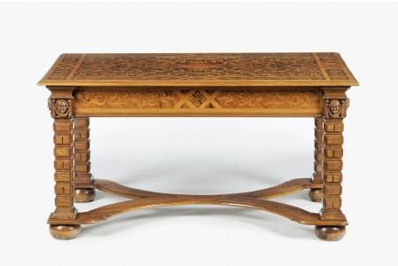 Piètement formé de deux chapiteaux corinthiens en bois naturel,...