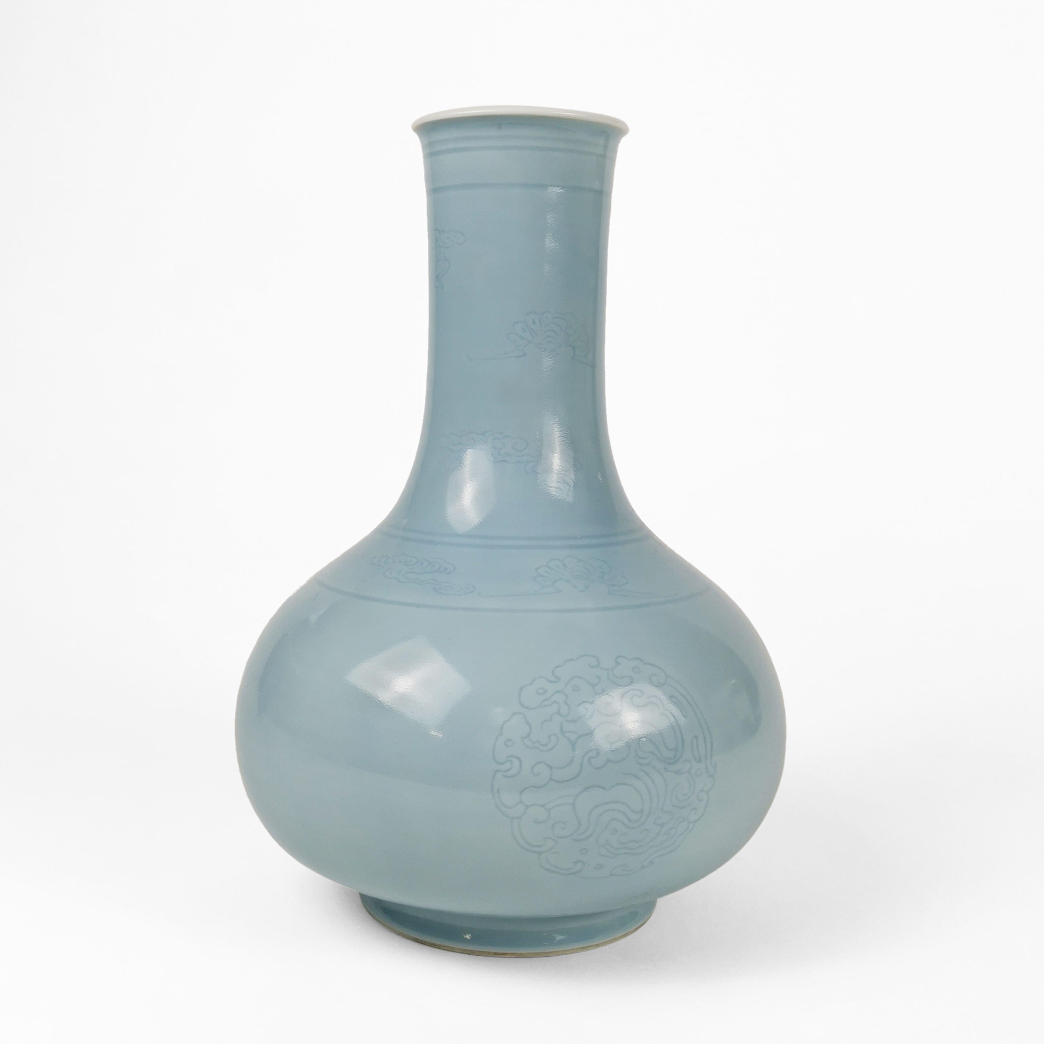Porcelaine émaillée céladon à motifs incisés de nuées, H 31 cm