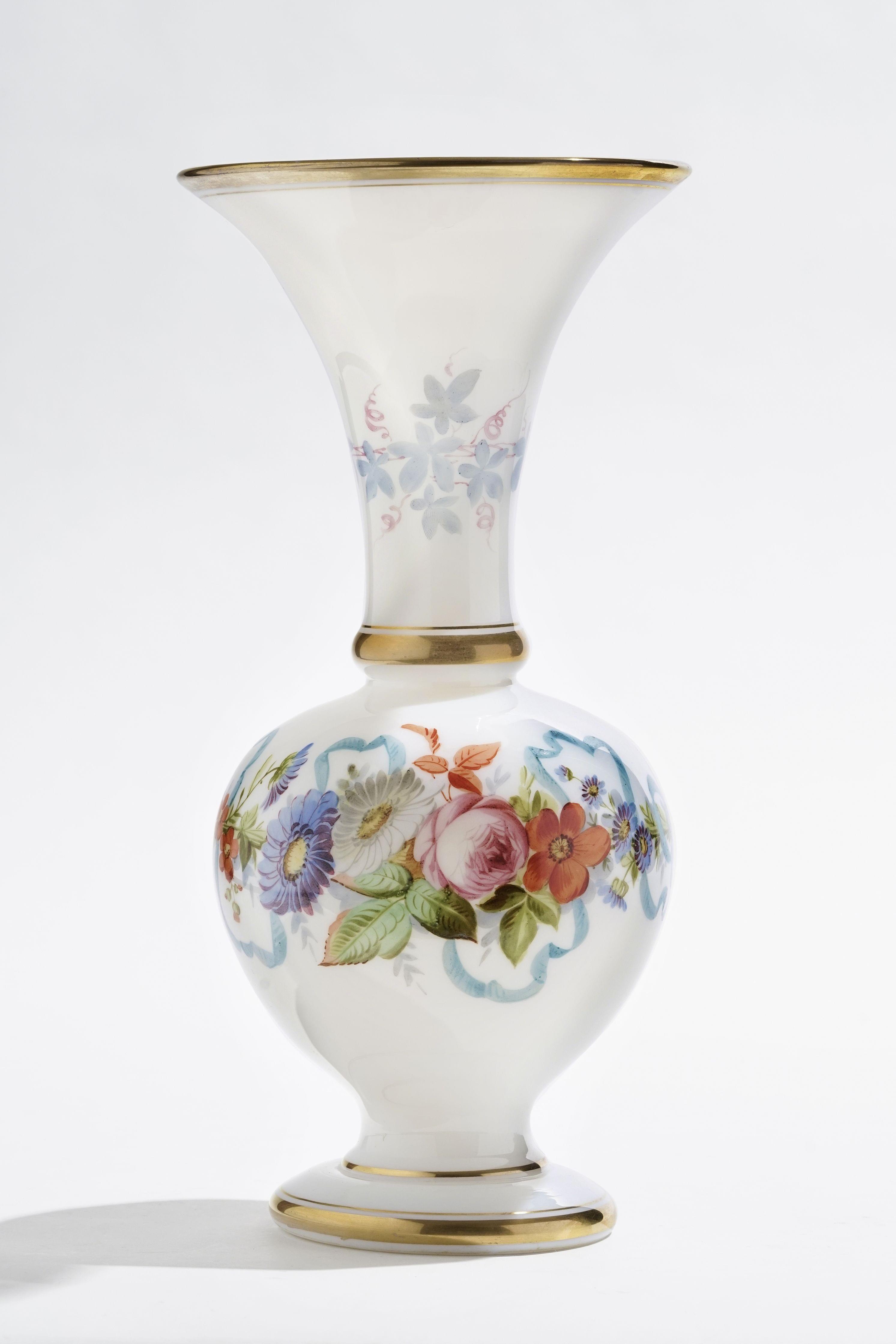 Opaline blanche à décor de fleurs, H 29,5 cm