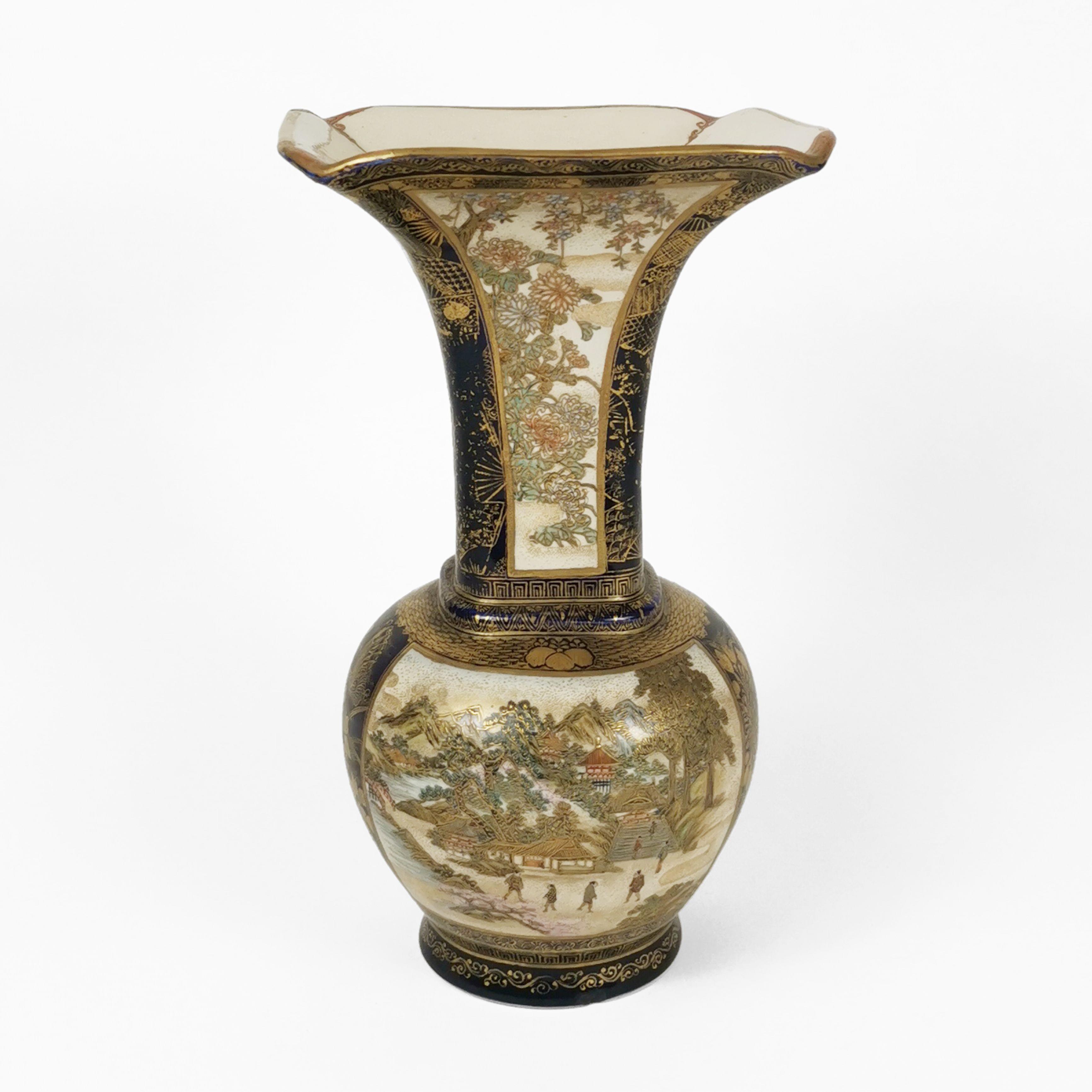 Céramique émaillée polychrome à décor de paysages animés en réserve, H 31 cm