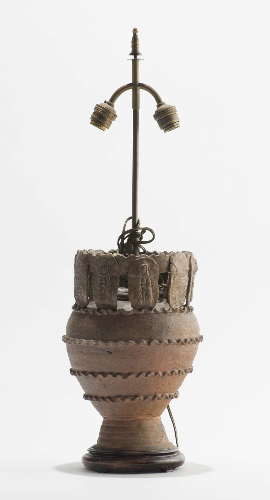 128. Bague à décor d'une plaque de jade sertie d'un rubis et de diama...