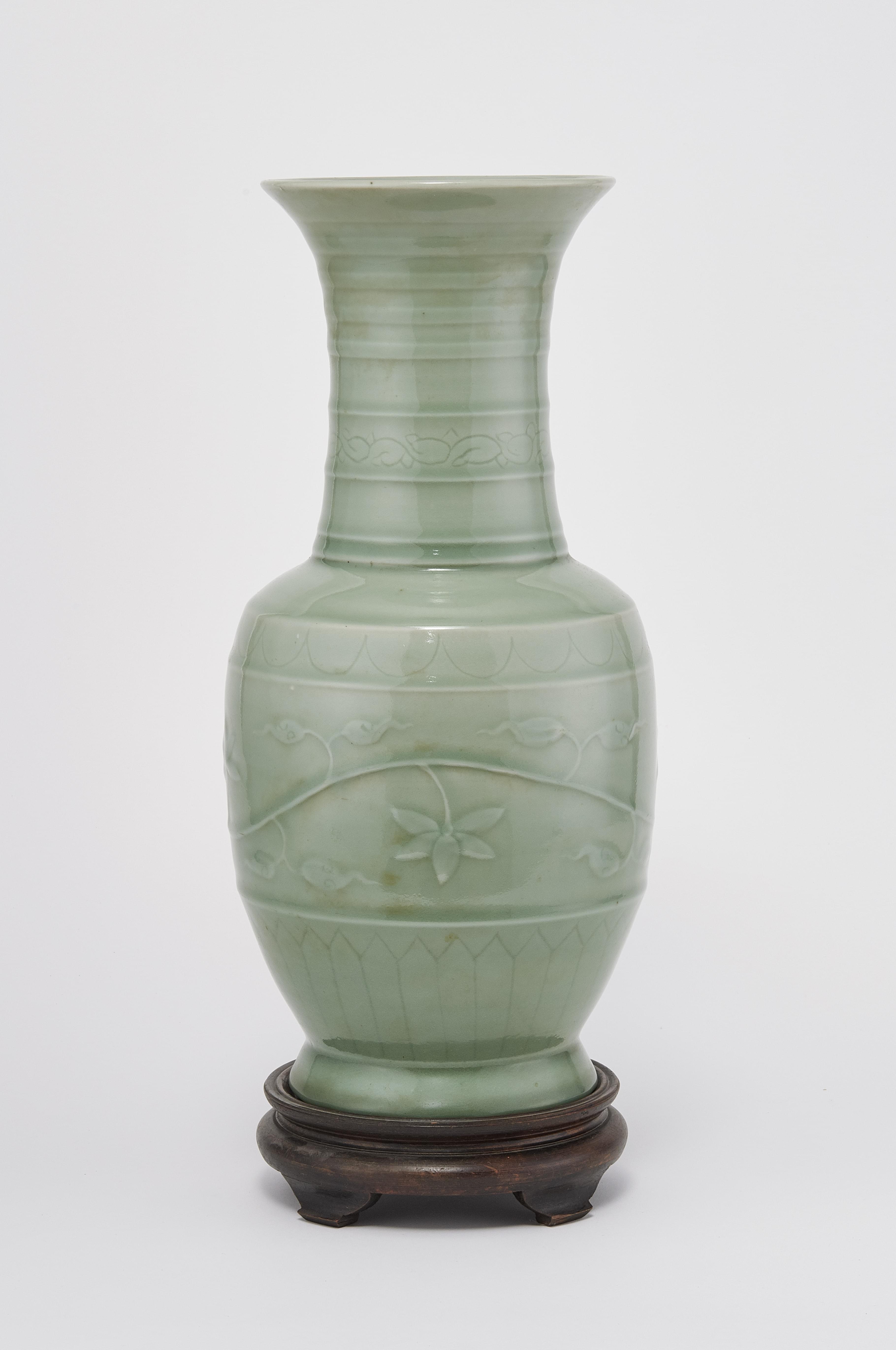 Porcelaine céladon à décor floral stylisé en léger relief, H 42 cm