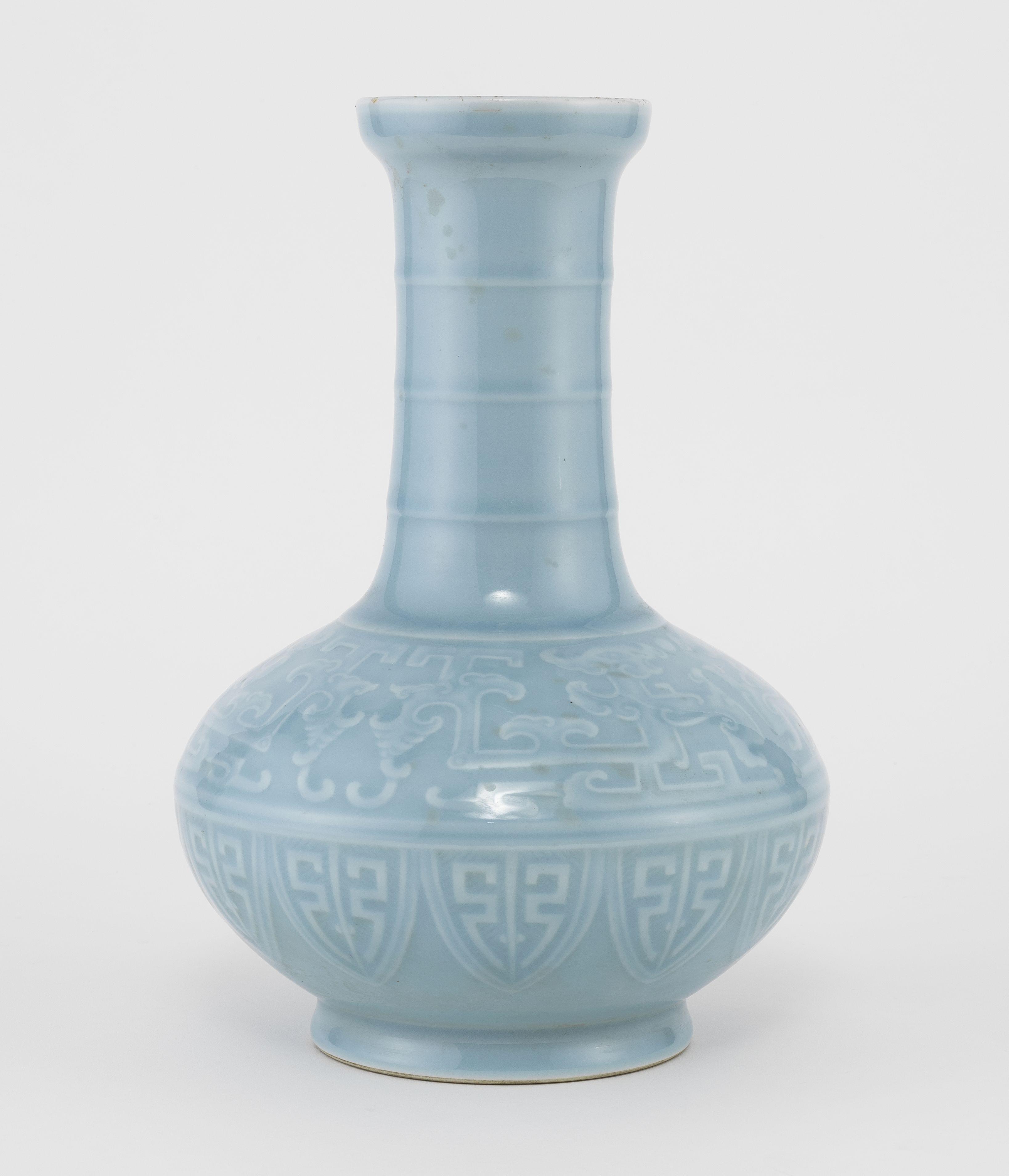 Porcelaine émaillée rouge de fer sur fond turquoise à motif de d...