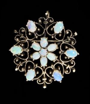 65. Broche-pendentif à motif de fleur ajourée sertie d'opales ovales...