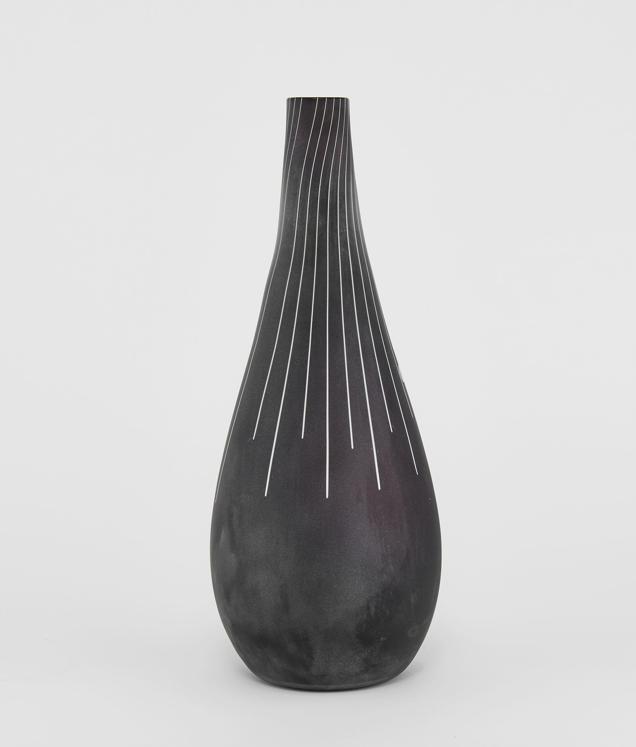 Vase noir à décor de lignes, H 43 cm