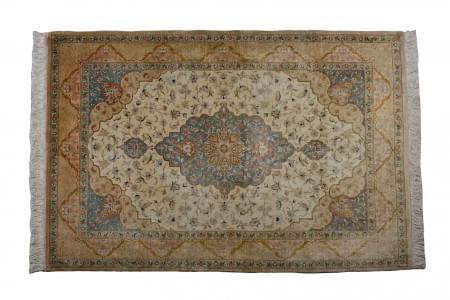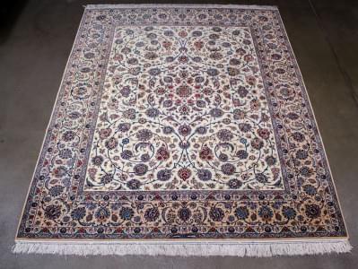 Laine et soie à décor de rinceaux sur fond ivoire, 304x260 cm