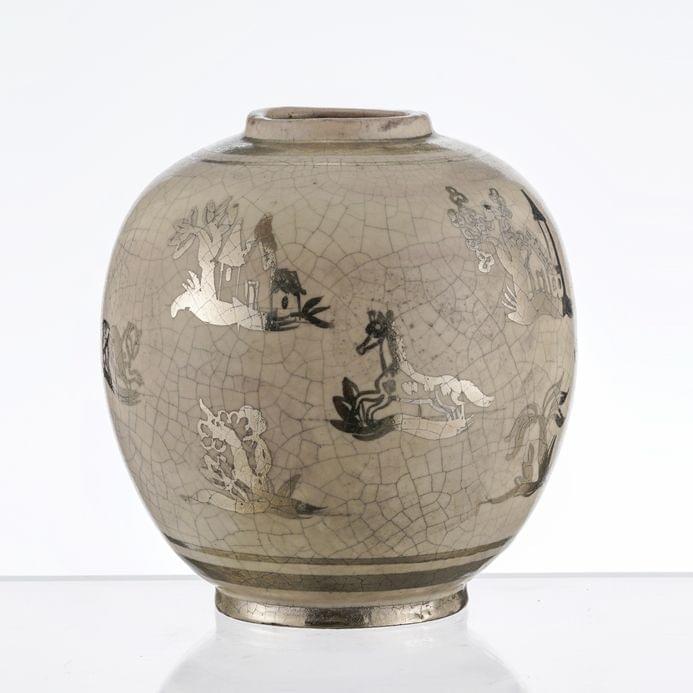 Porcelaine céladon à décor d'objets bouddhistes précieux, H 20 c...