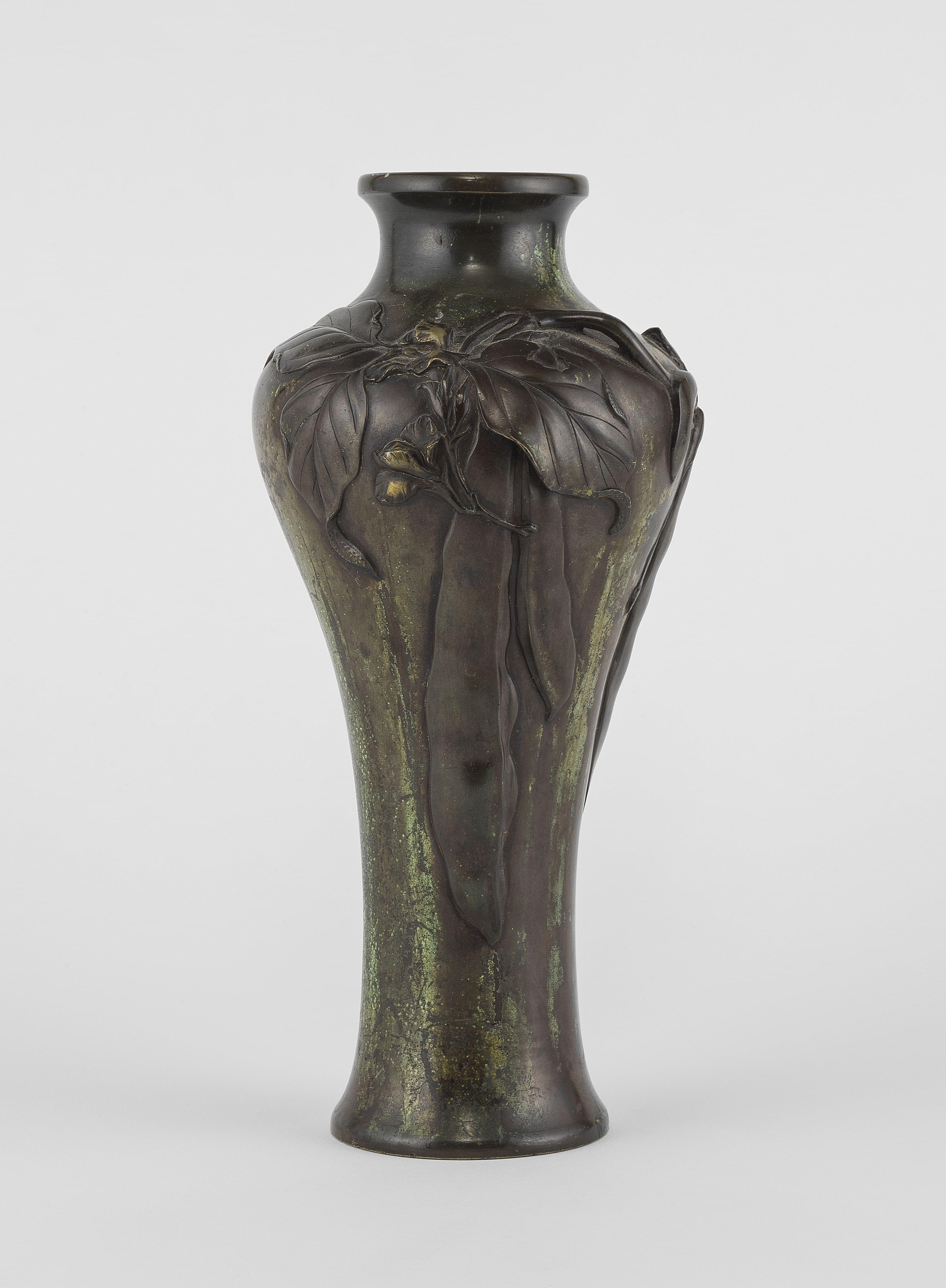 Bronze à patine verte à motif en léger relief de fleurs, H 29 cm
