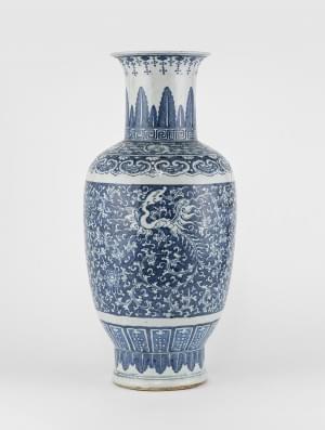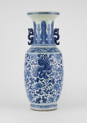 Porcelaine bleu blanc à motif d'un phénix, H 63 cm