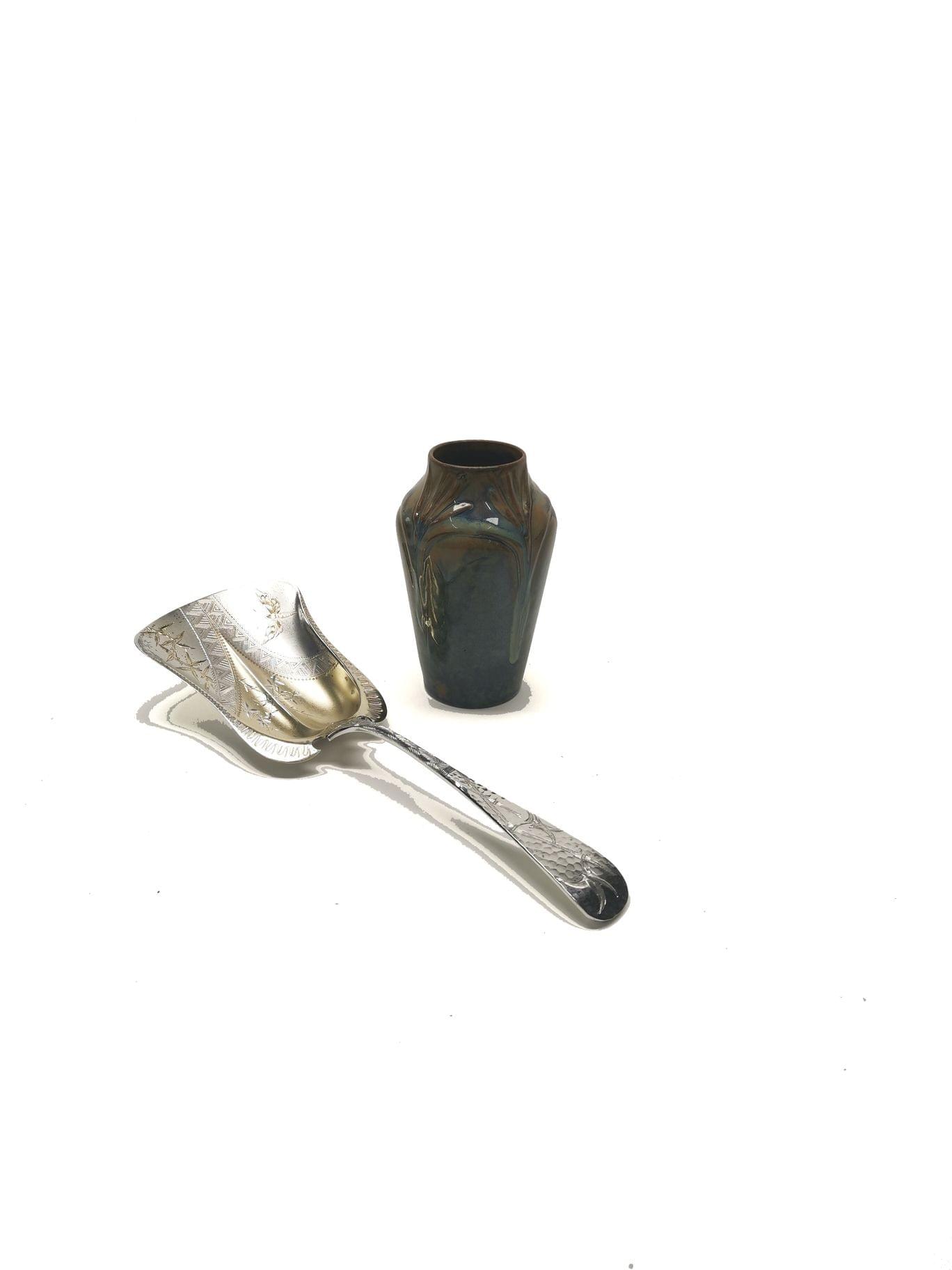 3671. Vase Art nouveau et cuillère de service japonnisante