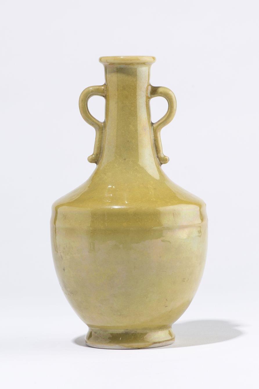 Porcelaine à engobe monochrome jaune, Chine, XIXe s, marque apocryphe à six caractères de Qianlong (1736-1795), H 23 cm