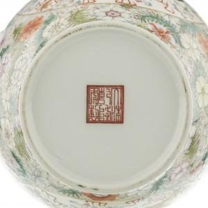 Porcelaine émaillée famille rose à décor d'un phénix et d'un dragon dans deux réserves sur fond de mille fleurs, H 32,5 cm. Ancienne collection du Dr. Alessandro Gomelsky jusqu’à sa mort à Locarno en 1964, puis de son fils le producteur de musique Giorgio Gomelsky (1934-2016); acquis auprès de ce dernier par l’actuel propriétaire.