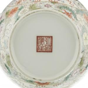 Porcelaine émaillée famille rose à décor d'un phénix et d'un dragon dans deux réserves sur fond de mille fleurs, H 32,5 cm. Selon la tradition familiale, ancienne collection du Dr. Alessandro Gomelsky jusqu’à sa mort à Locarno en 1964, puis de son fils le producteur de musique Giorgio Gomelsky (1934-2016); acquis auprès de ce dernier par l’actuel propriétaire.