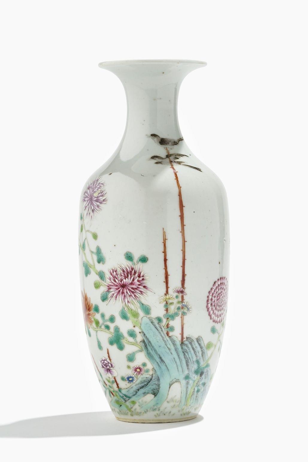 Porcelaine émaillée polychrome à décor de chrysanthèmes, H 20 cm