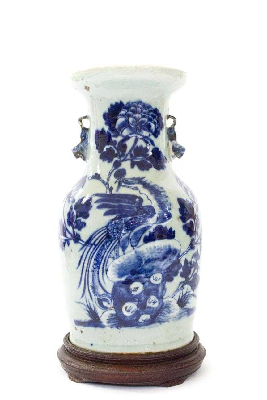 Porcelaine émaillée bleu blanc à décor d'un phénix dans les fleurs, H 33 cm