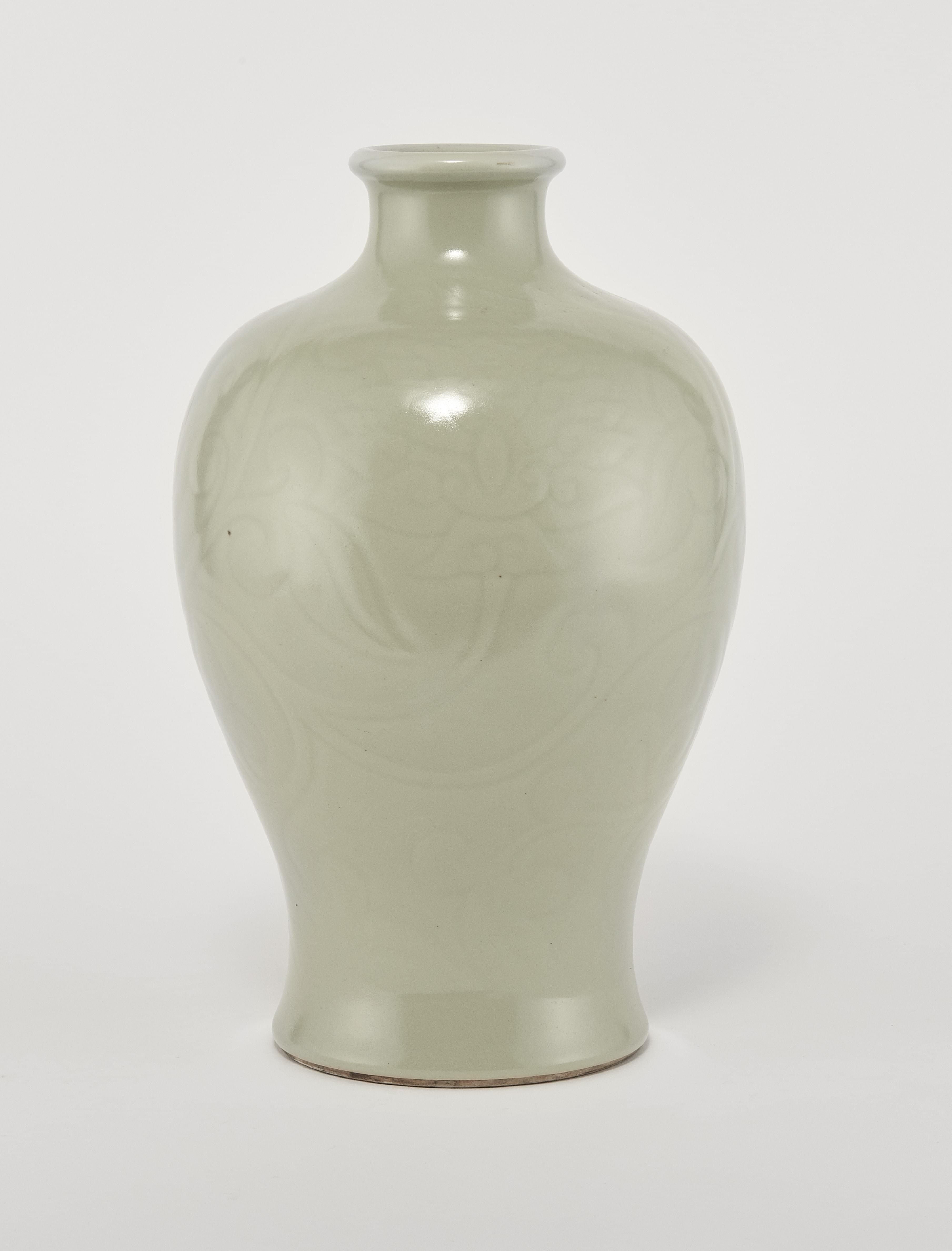 Porcelaine émaillée céladon à motif floral incisé, H 31 cm