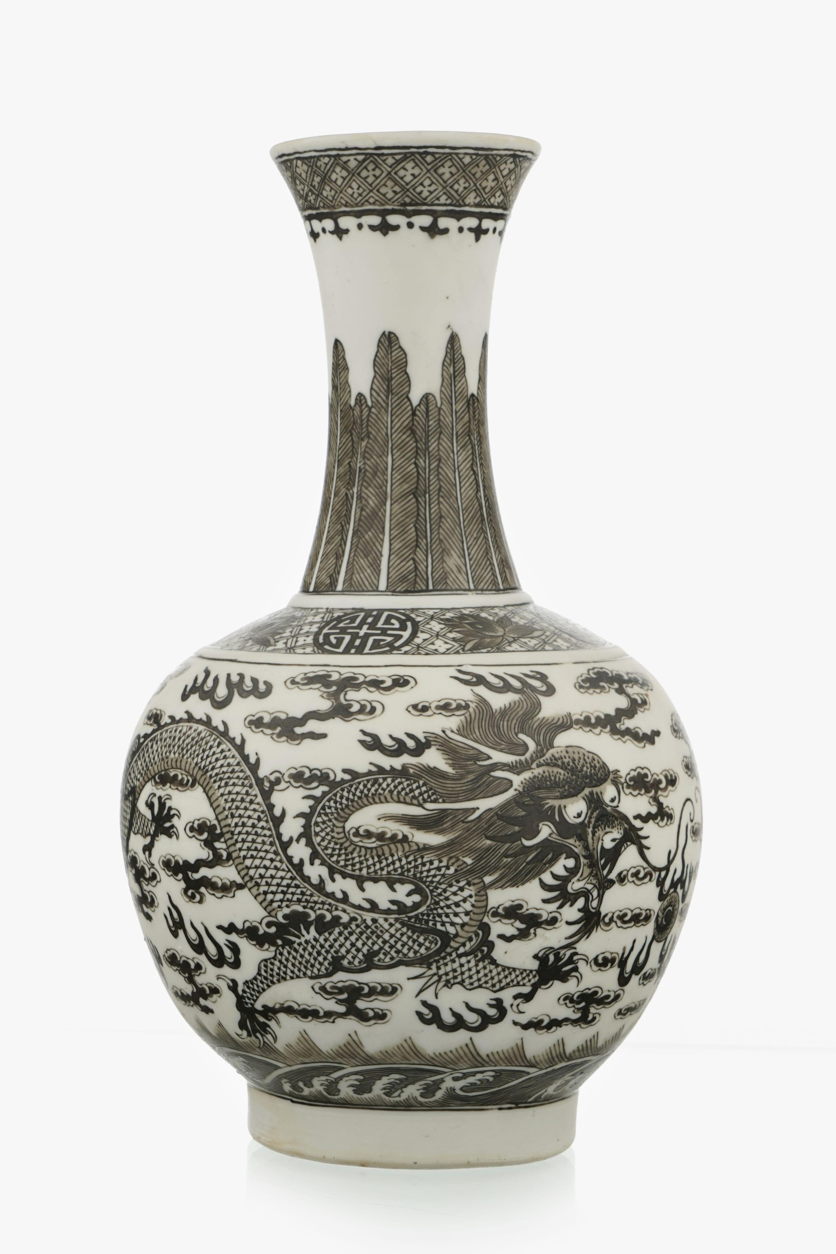 Biscuit émaillé à décor de dragons poursuivant la perle sacrée, H 30 cm