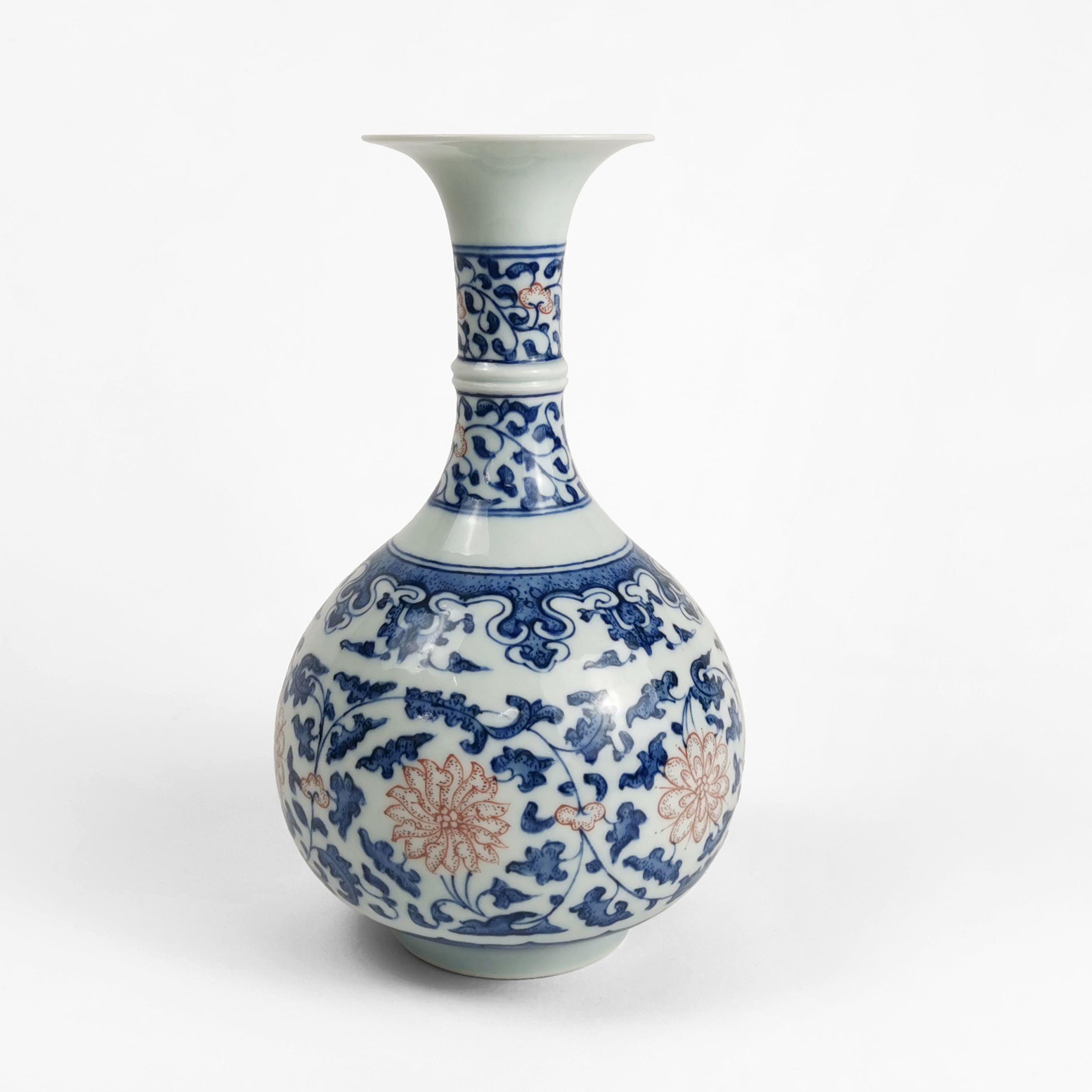 Porcelaine émaillée bleu blanc et rouge de fer à décor de fleurs, H 25 cm
