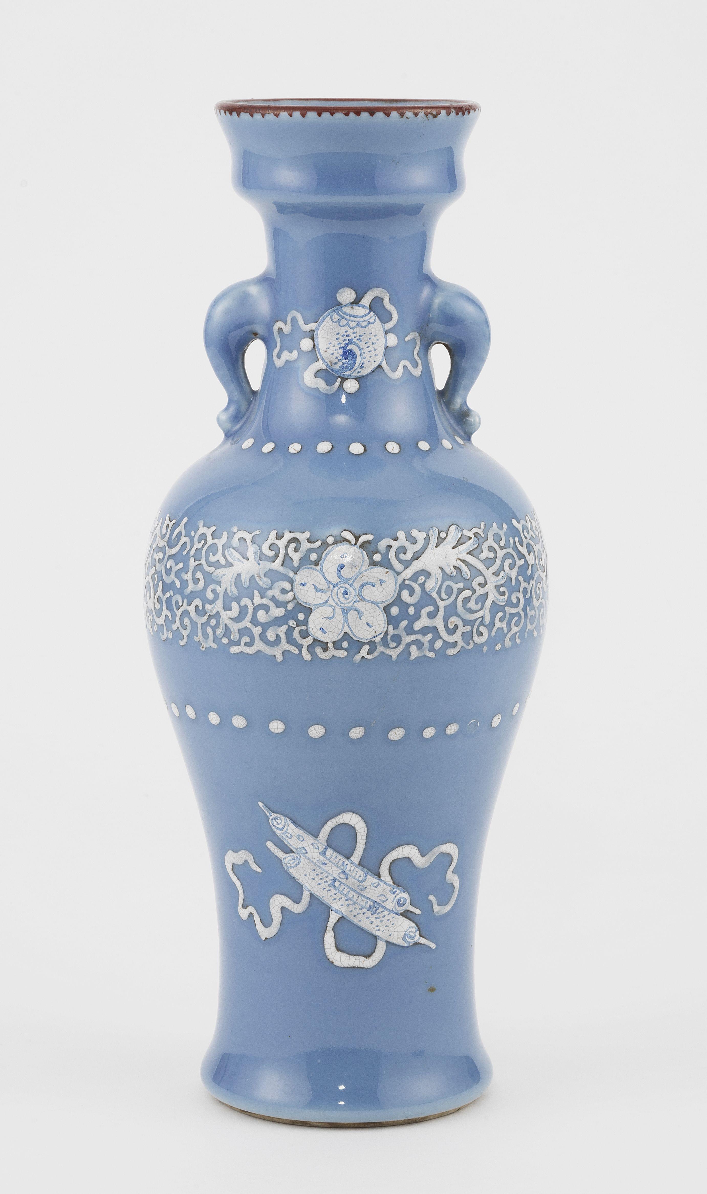 Porcelaine émaillée monochrome bleu ciel avec un décor à l'émail blanc, H 28 cm