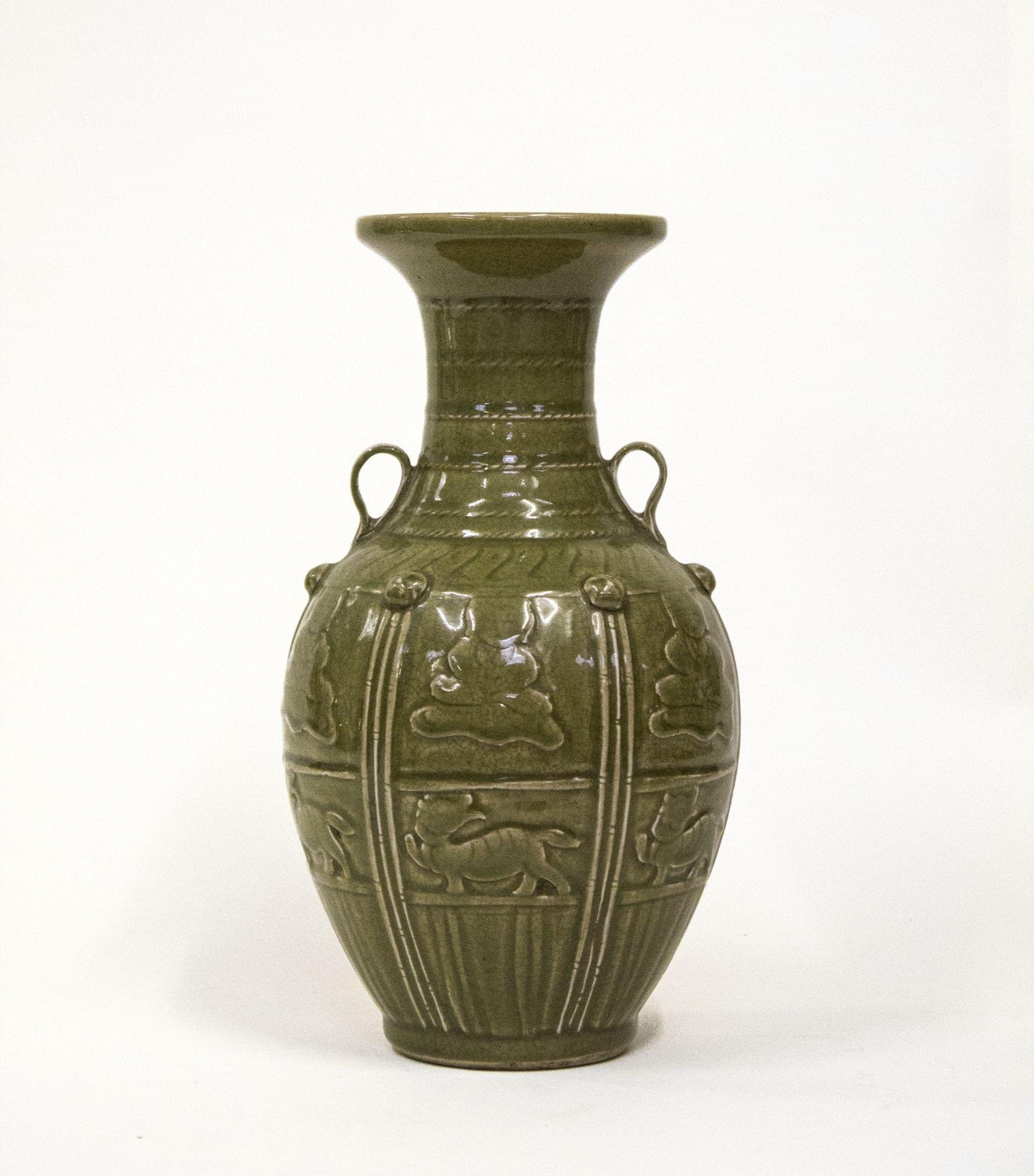 Orné de deux anneaux bleu roi et filets or, H 30 cm