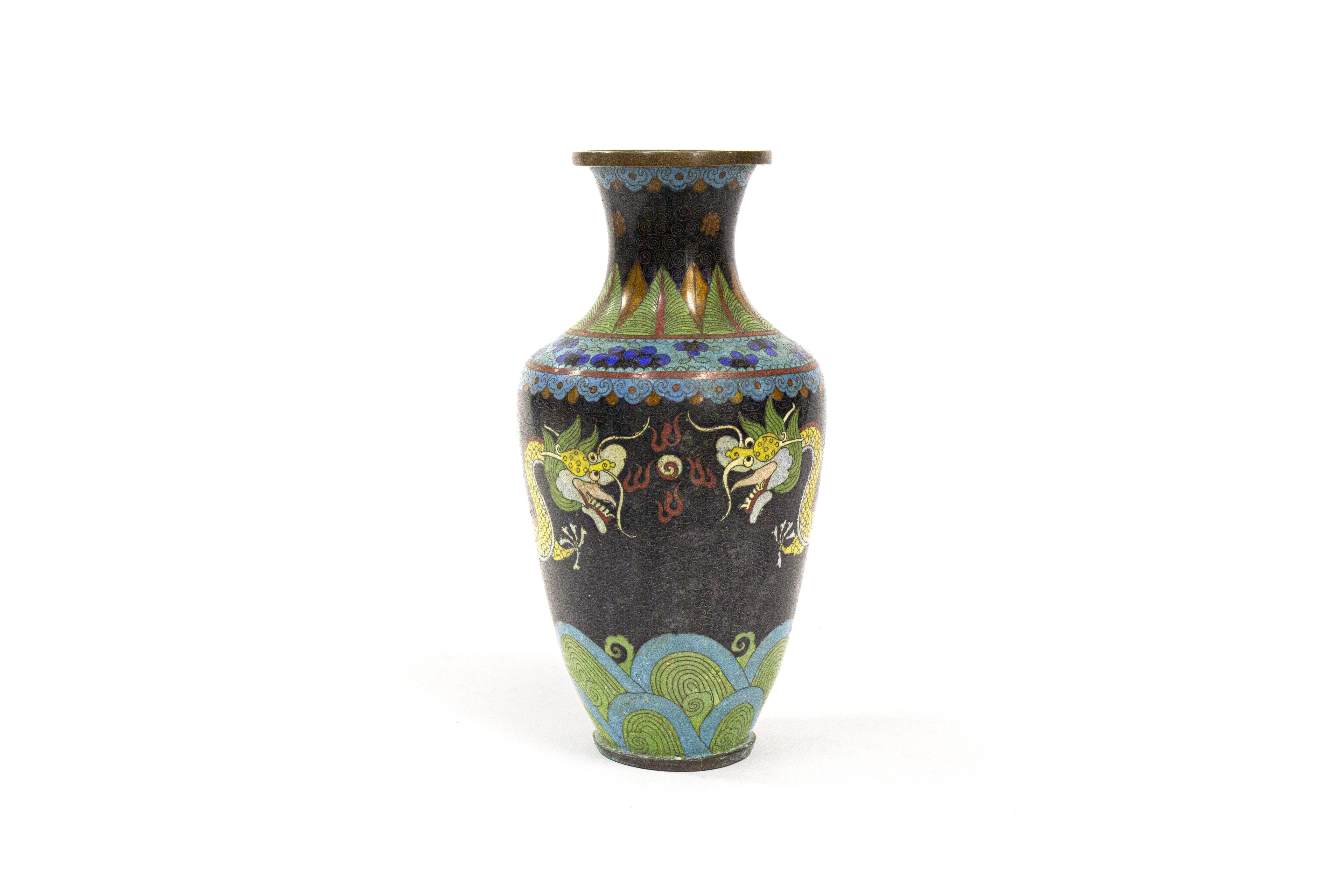 Cuivre et émaux polychromes à décor de dragon, H 27 cm