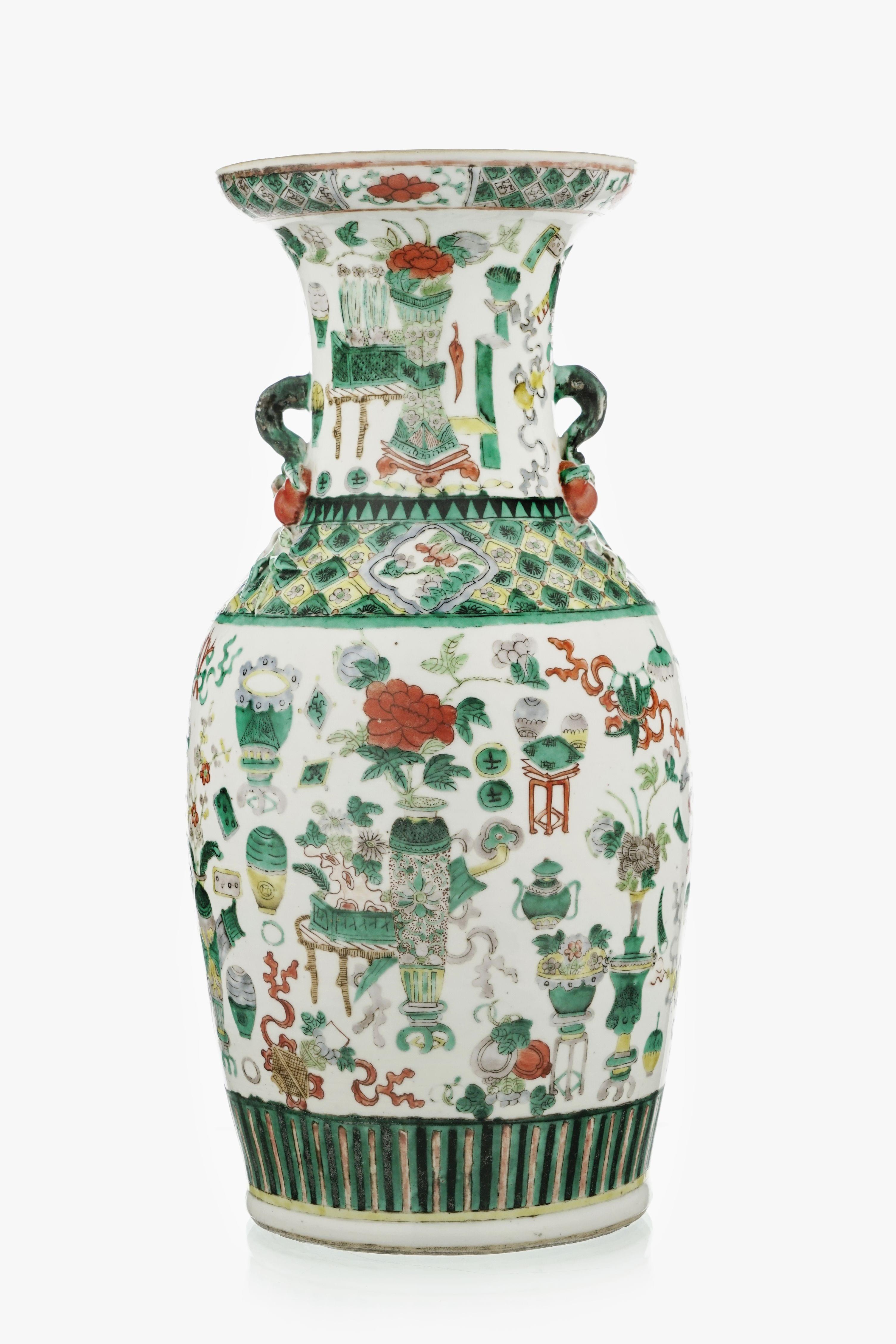 285. Vase balustre, famille verte, Chine, dynastie Qing, XIXe s
