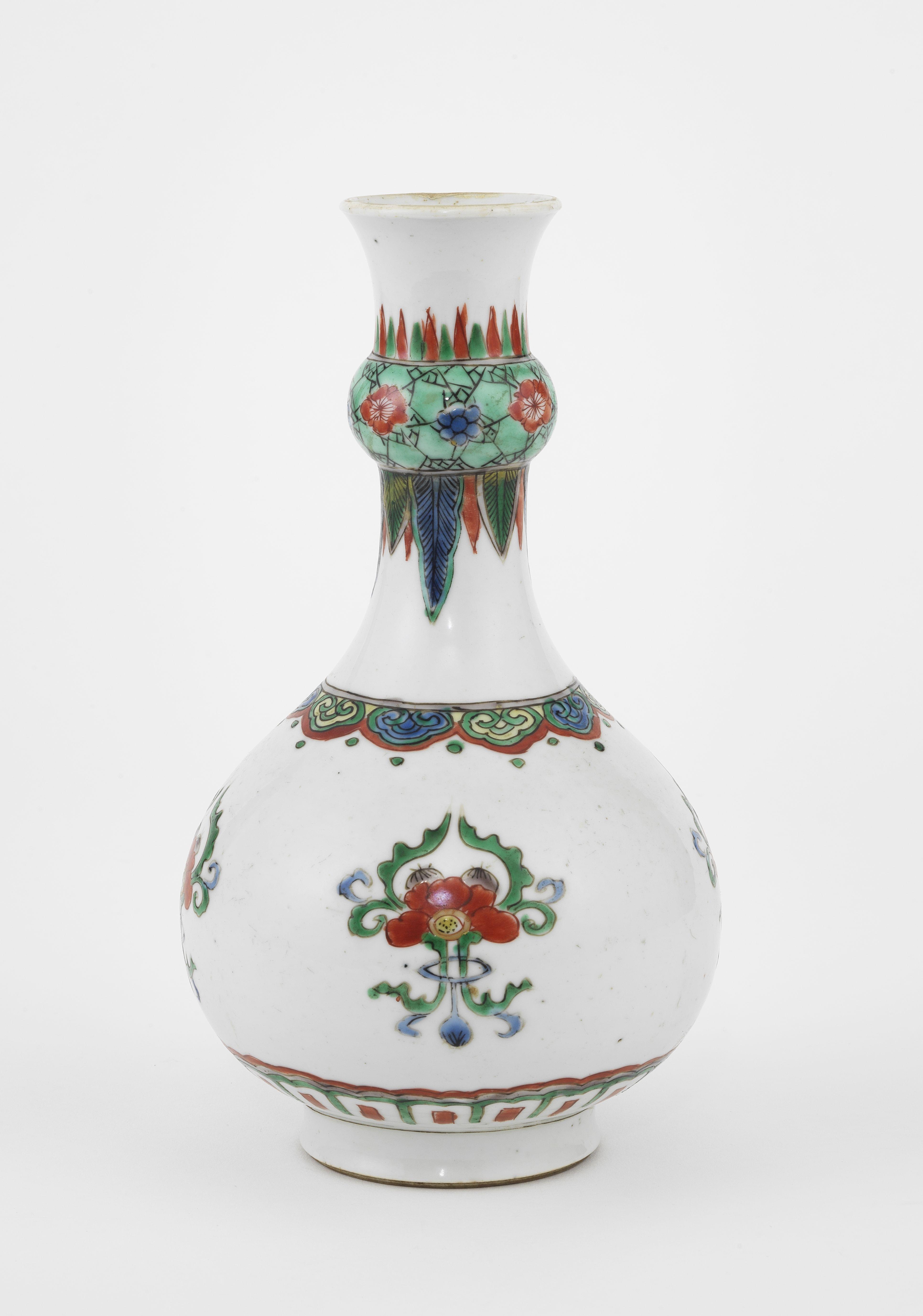 Porcelaine émaillée polychrome à motif floral sur fond blanc, H 20 cm
