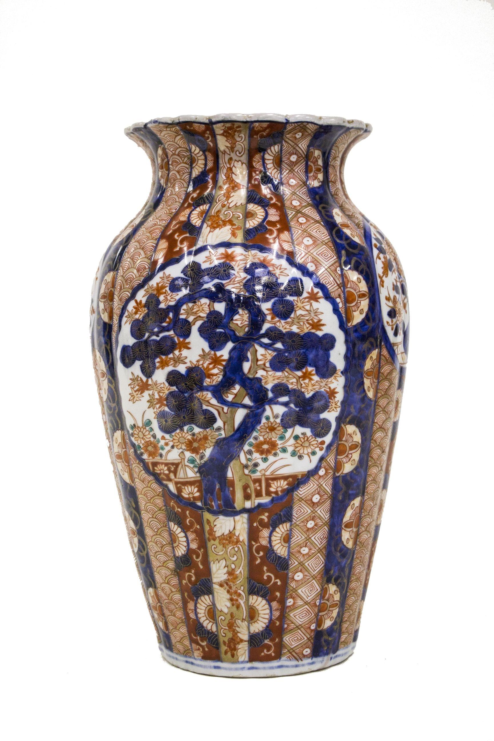 Porcelaine émaillée bleu rouge et or à décor de fleurs dans des réserves, H 32 cm