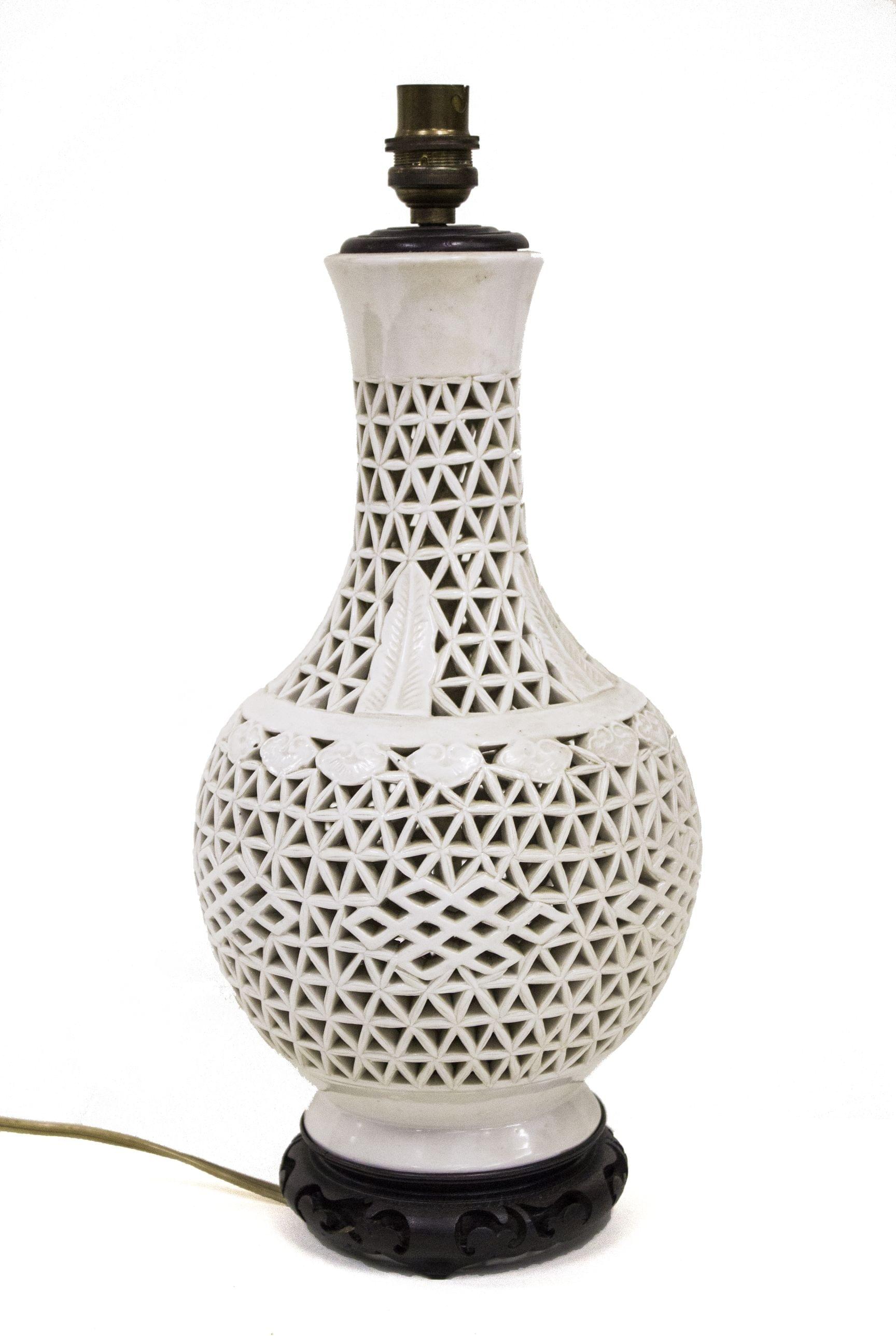 Porcelaine blanche ajourée à décor de fleurs, H 28 cm