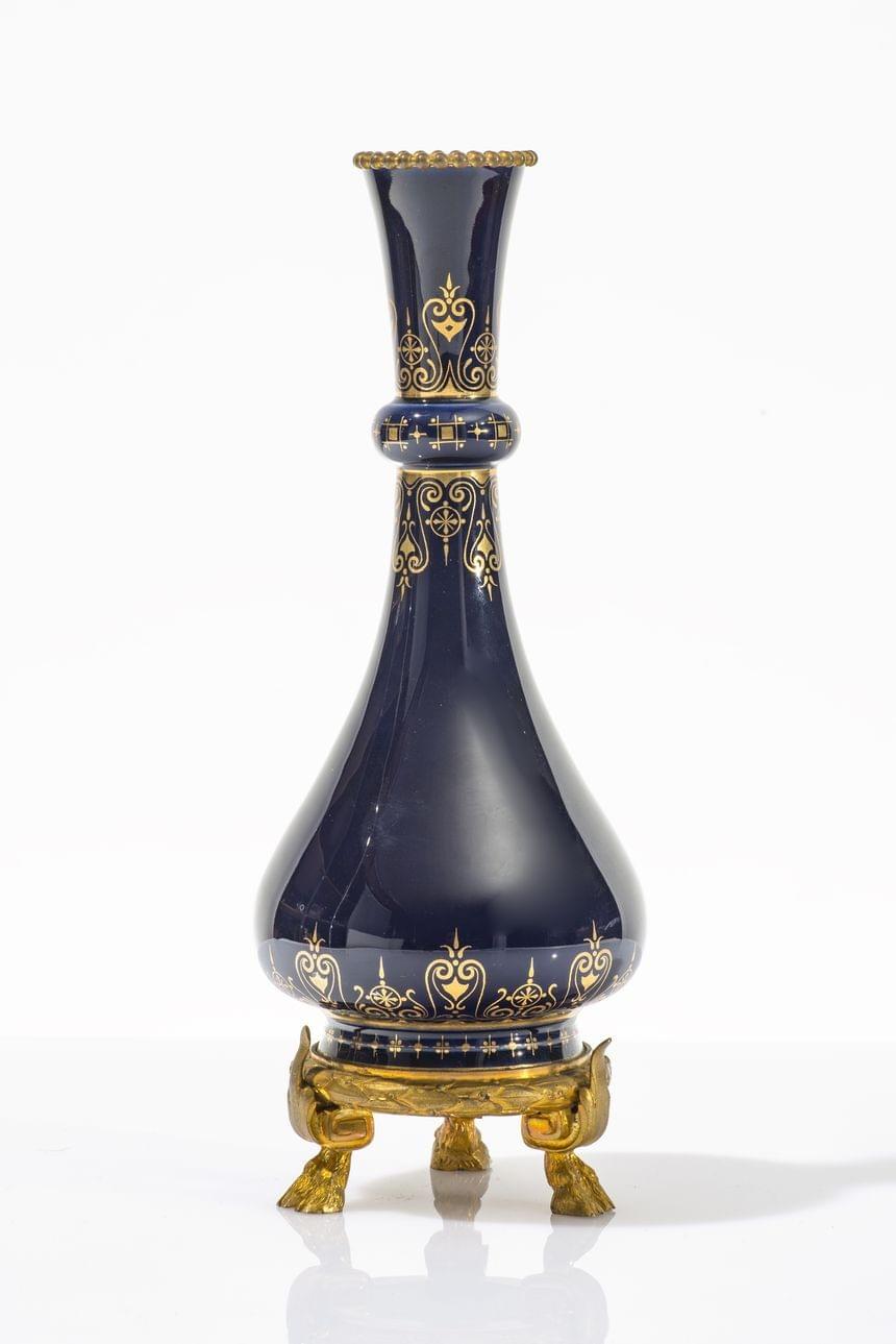 54. Calice et patène à décor d'arabesques turquoise et bleu nuit en...