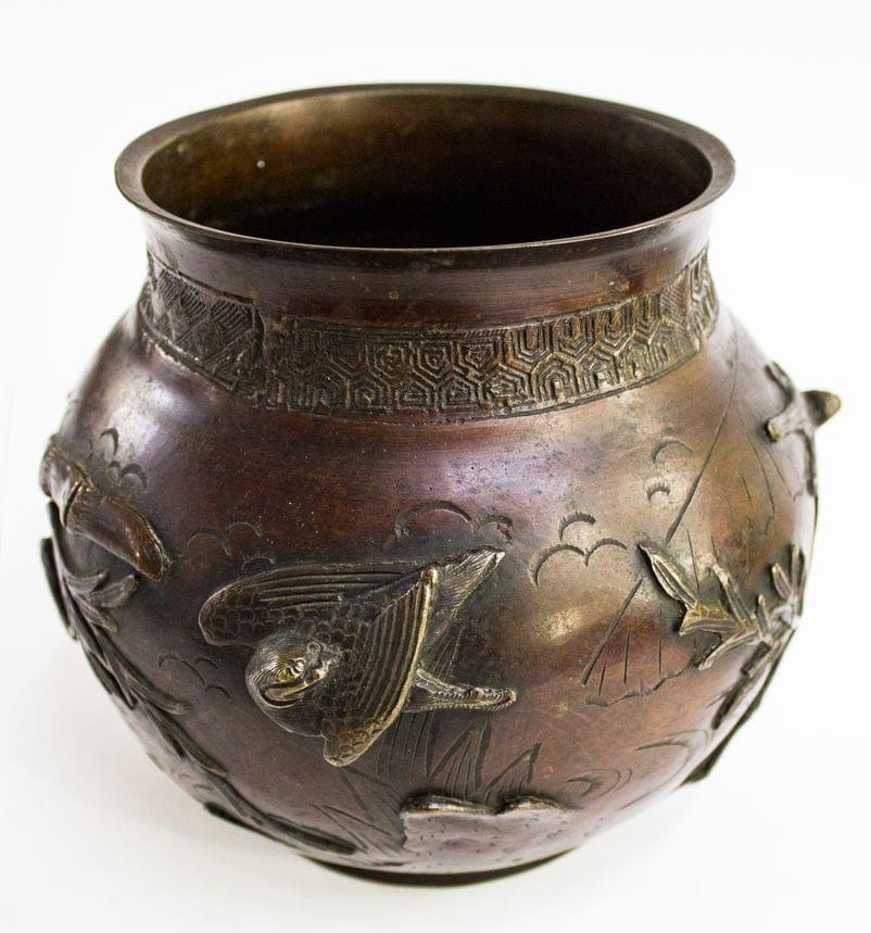 Bronze à décor d'oiseaux et bambous, Chine, fin XIXe s, H 19 cm