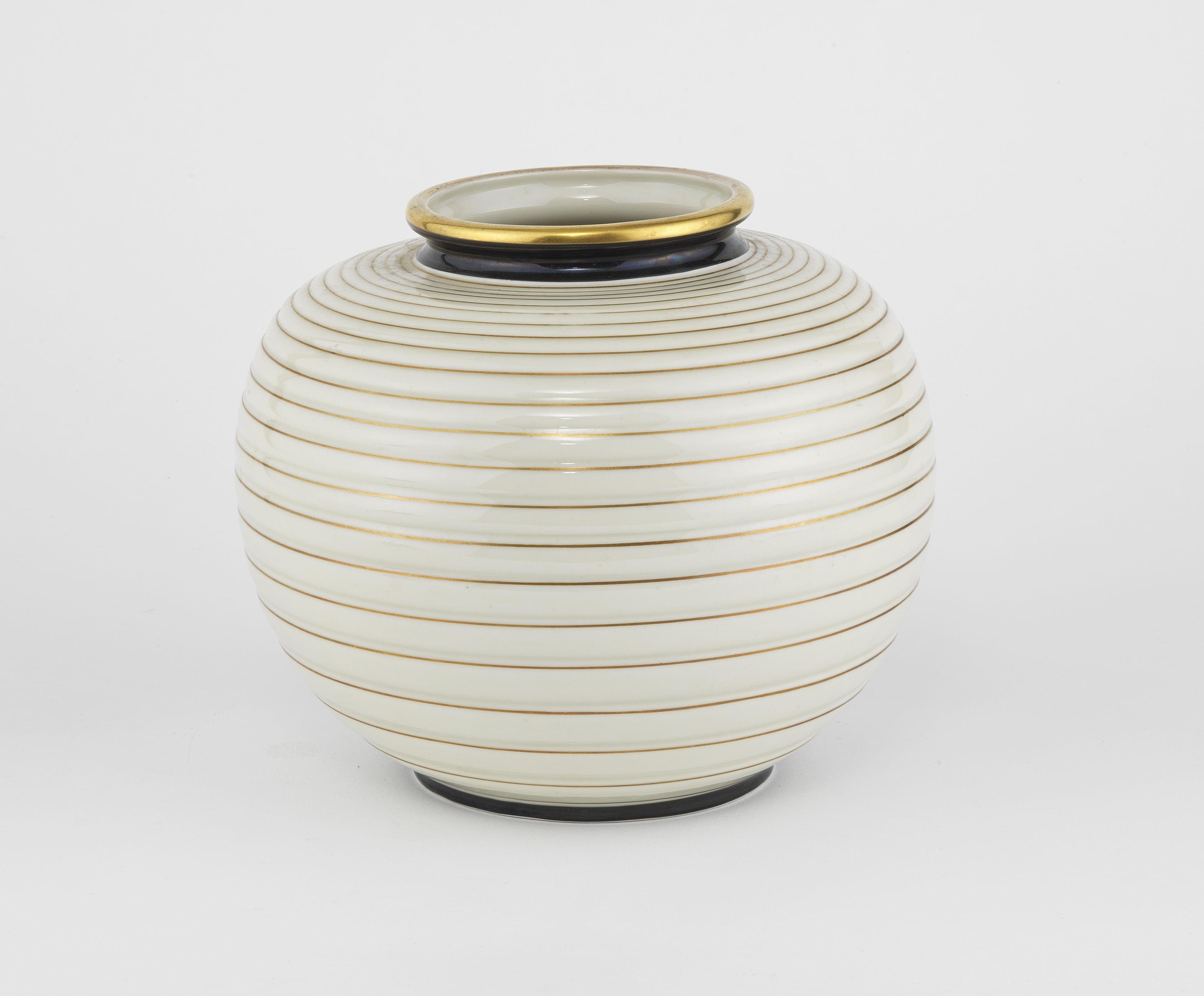 Porcelaine à motif annelé rehaussé de filets dorés, daté 40, H 20 cm