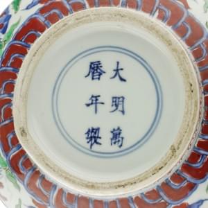 Porcelaine émaillée bleu, vert, jaune et rouge à décor de fleurs de lotus, H 23 cm