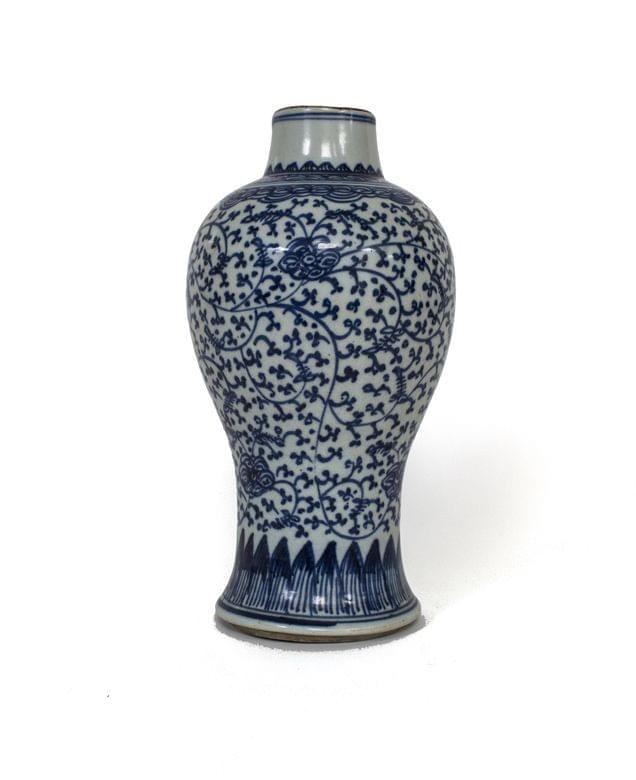 Porcelaine bleu blanc, à décor de rinceaux et fleurs, H 24 cm