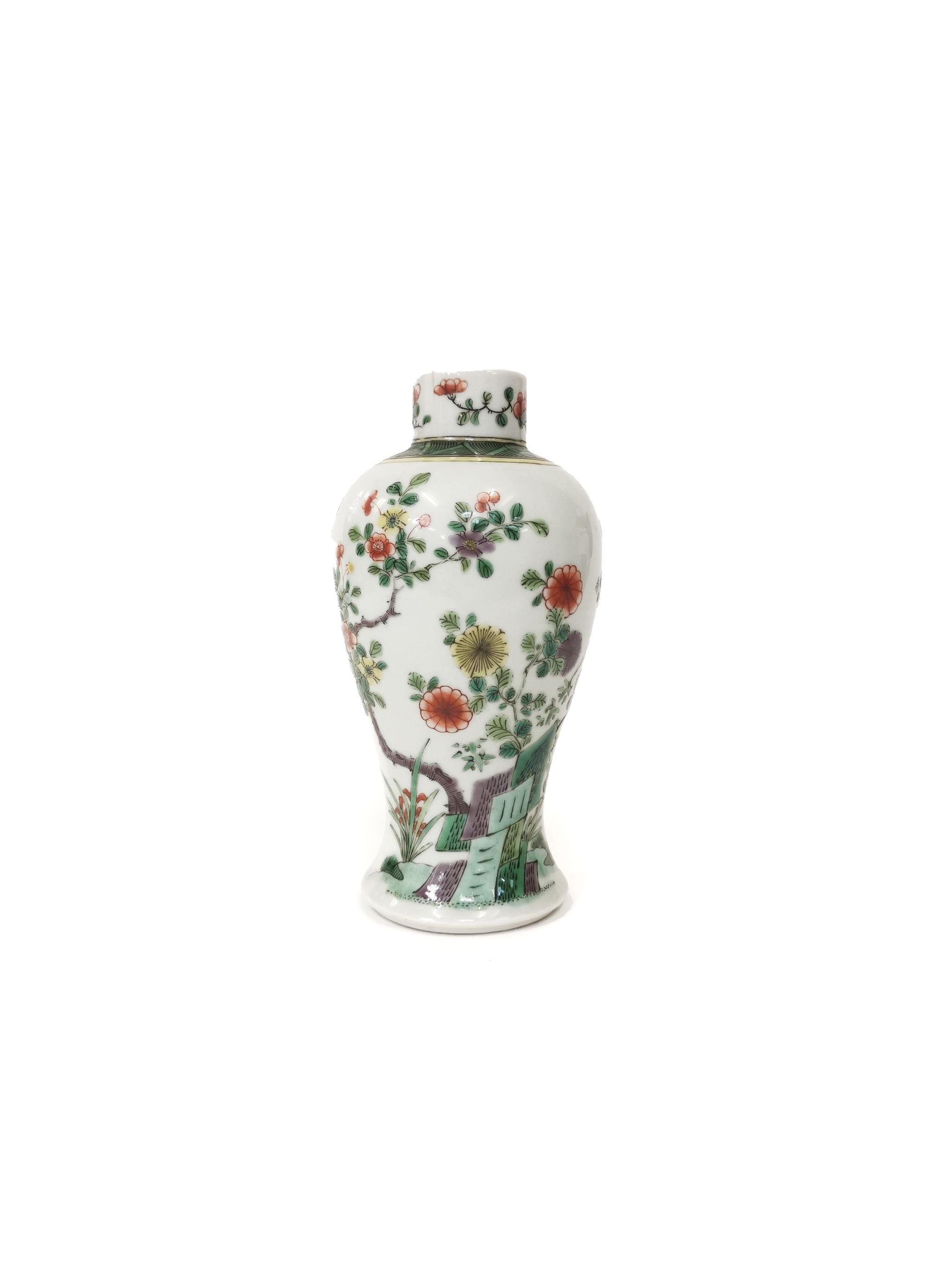 Porcelaine émaillée bleu blanc à décor de jardin, H 17 cm