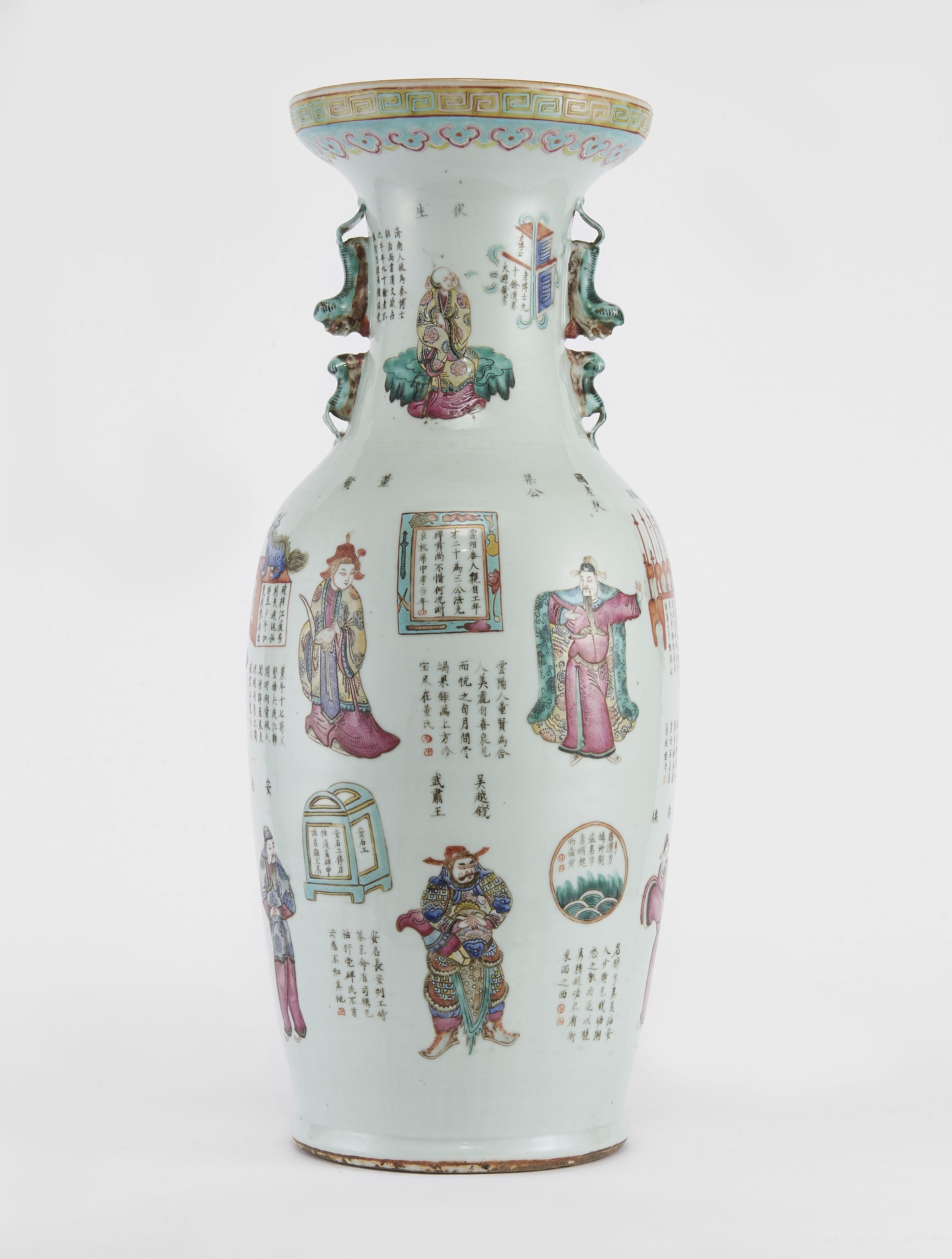Porcelaine émaillée polychrome à décor de poèmes et personnages, H 61 cm