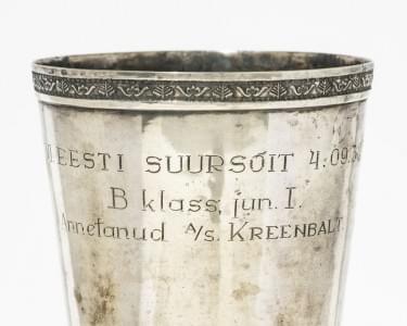 74. Tcharka à décor repoussé à l'intérieur d'animaux marins et de ri...