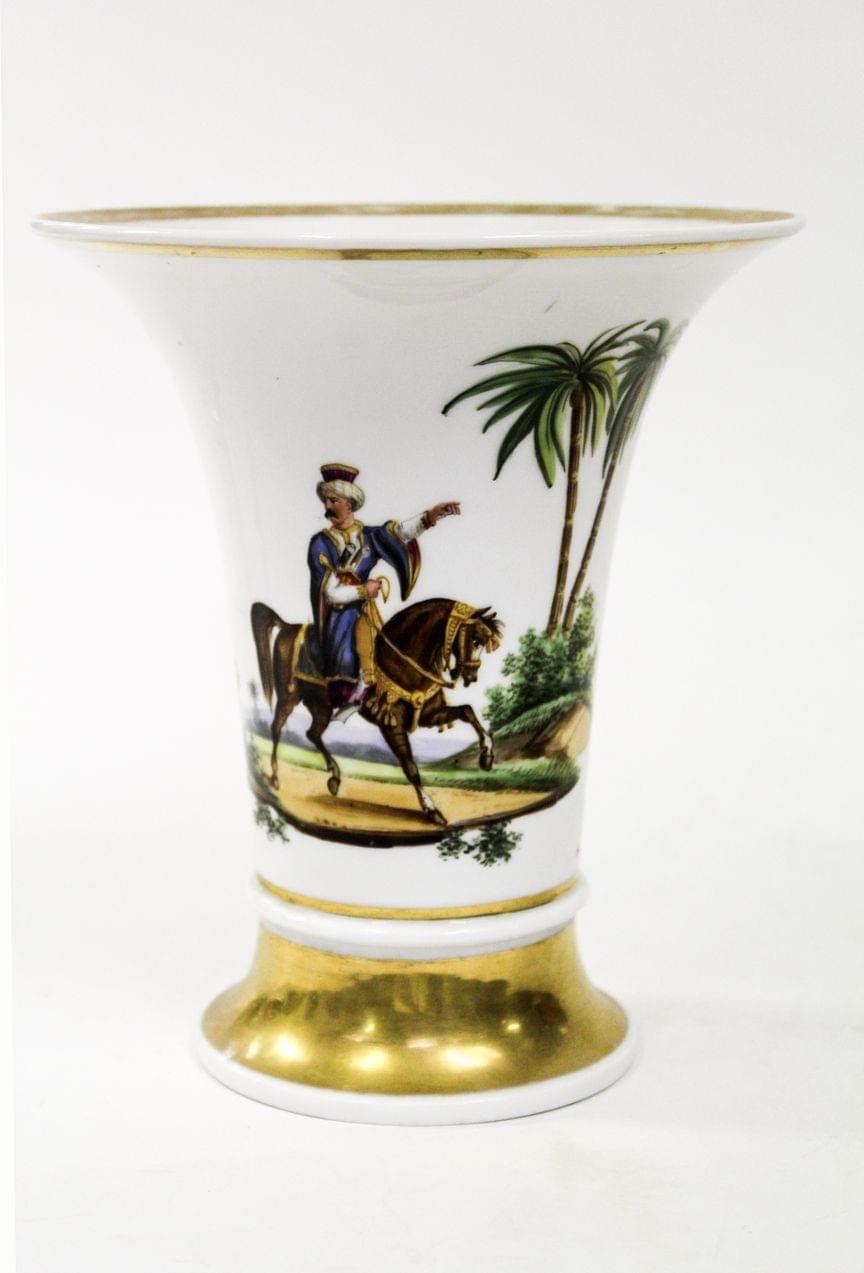 3804. Vase cornet orientaliste de cavalier et architecture