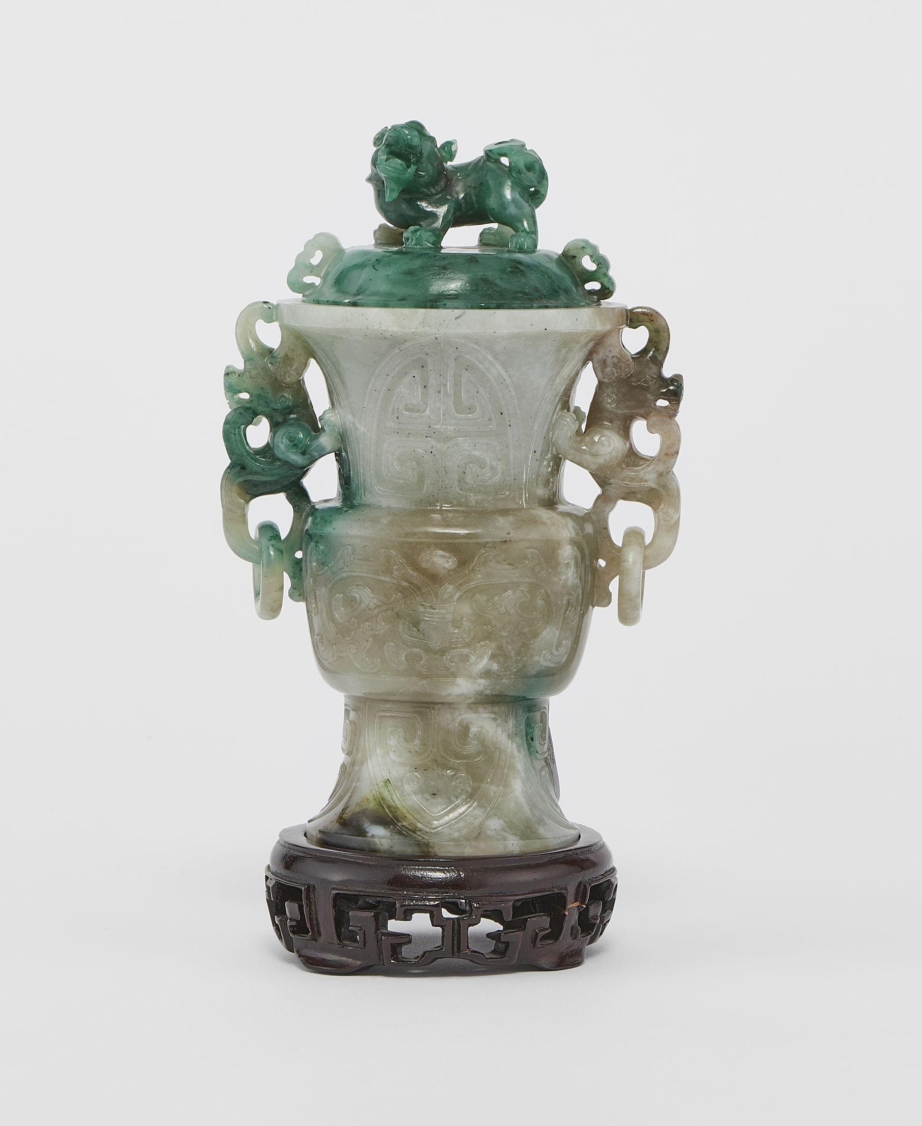Anses latérales, fretel en chien de Fô, jade, 16 cm. Provenance: collection Pernet-Villaverde