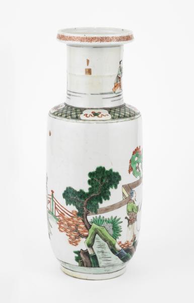 Porcelaine émaillée polychrome à décor de scènes de cour, H 35 cm
