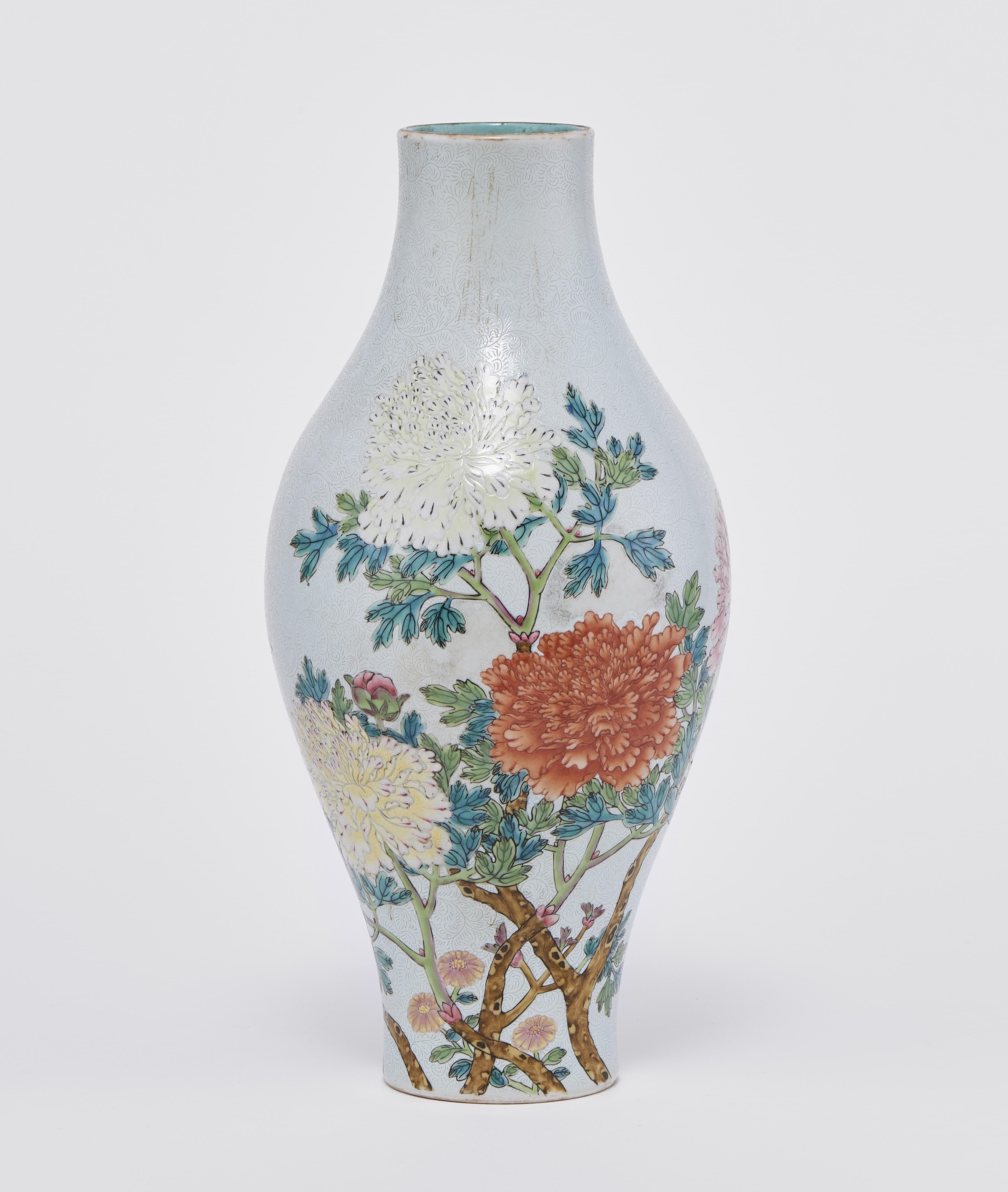 Porcelaine émaillée polychrome à décor de fleurs, H 28 cm