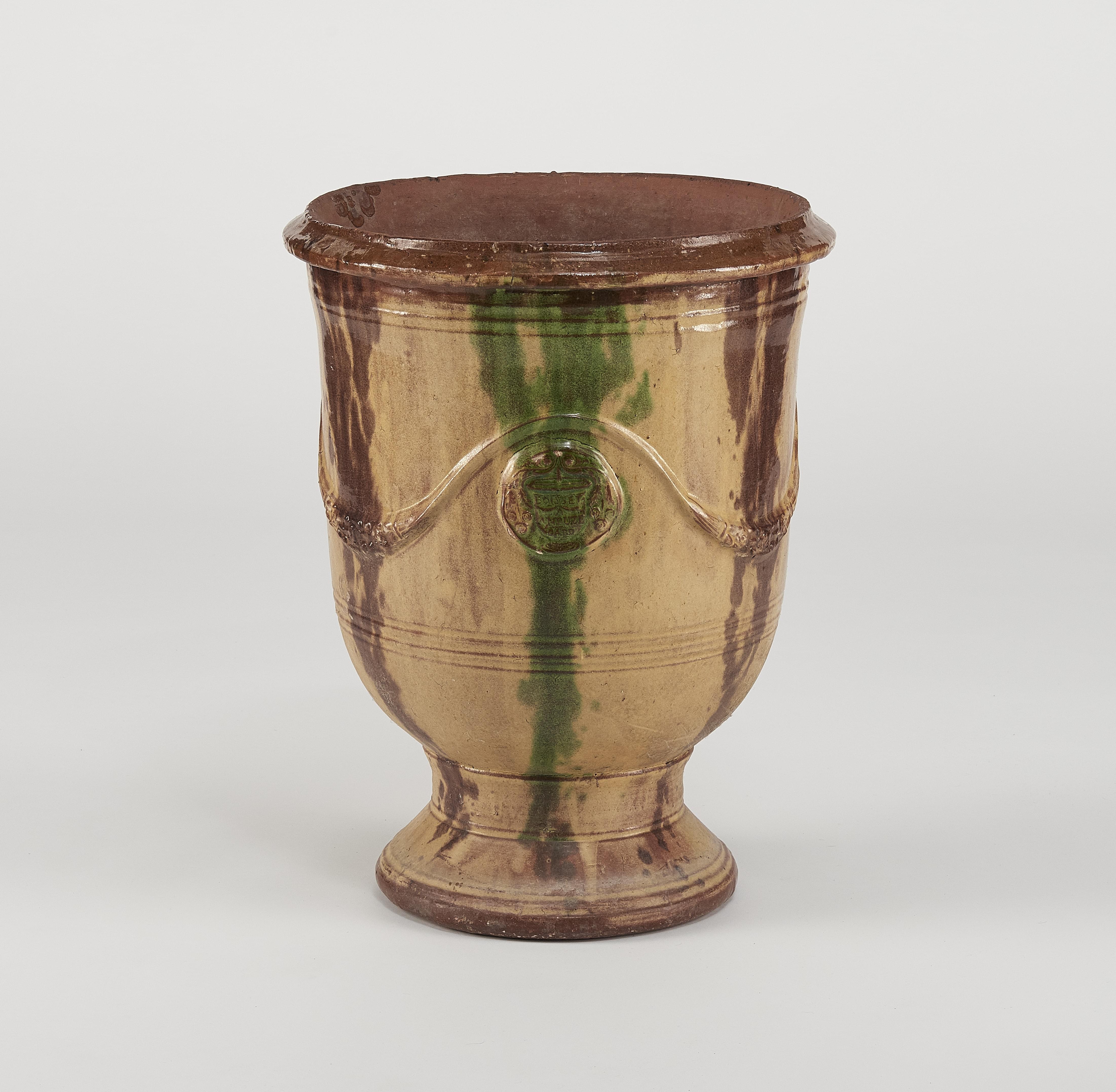 Porcelaine émaillée monochrome, anses latérales cerf, H 17,5 cm