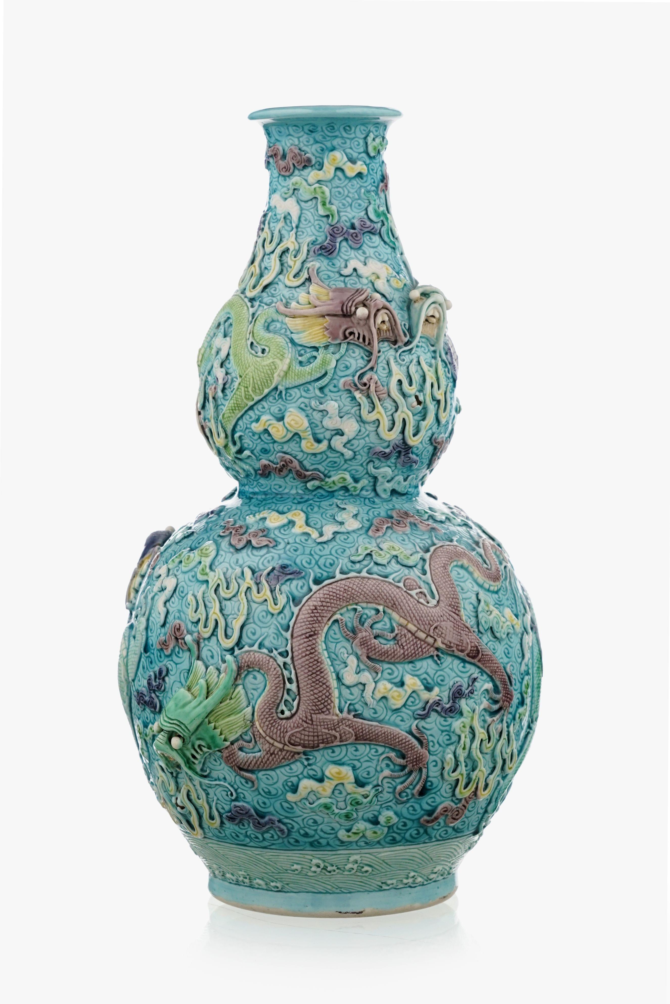 271. Vase double-gourde, style fahua, Chine, XIXe s, marque Qianlong apocryphe