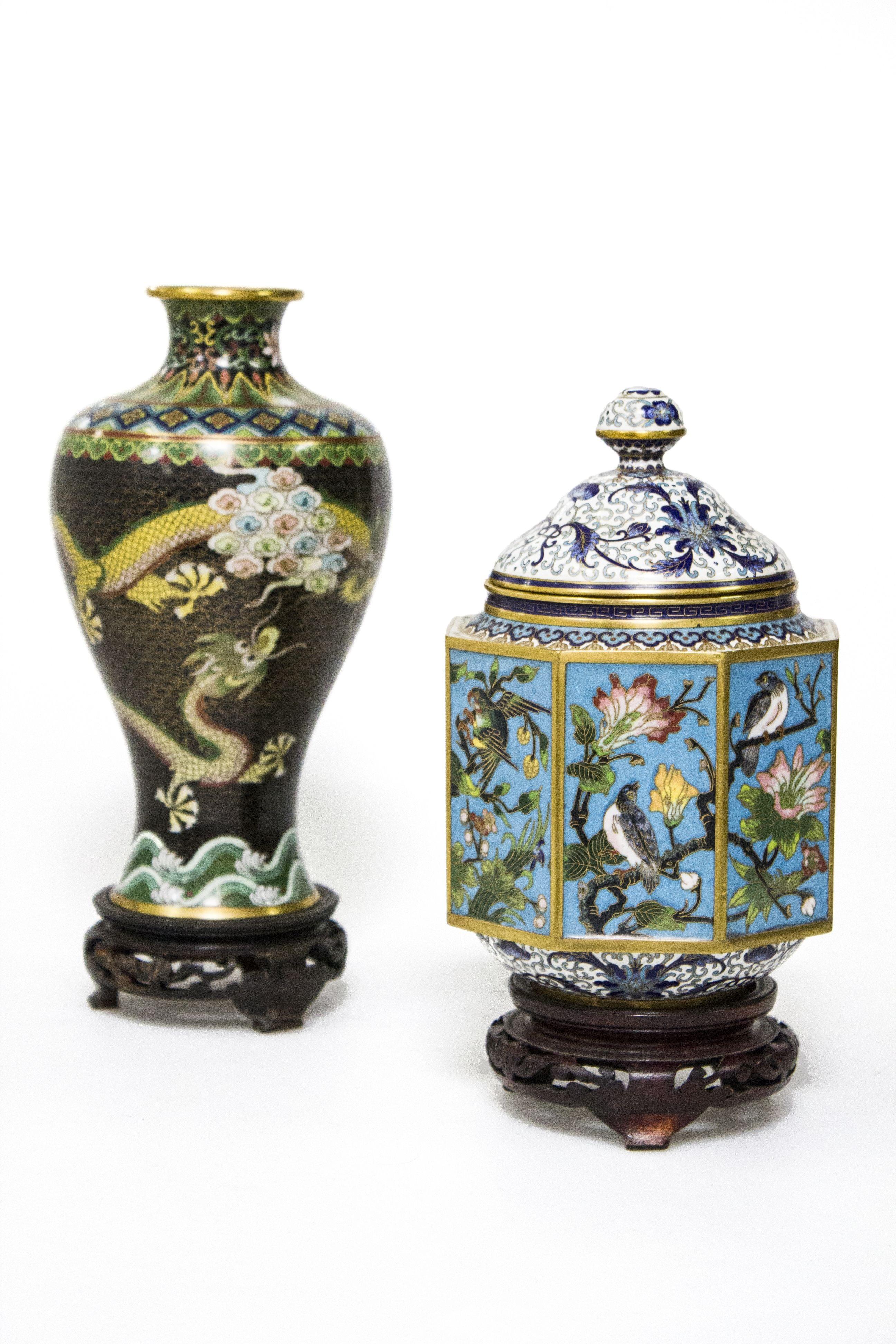 3380. Vase et boîte couverte en cloisonné, Chine, XXe s