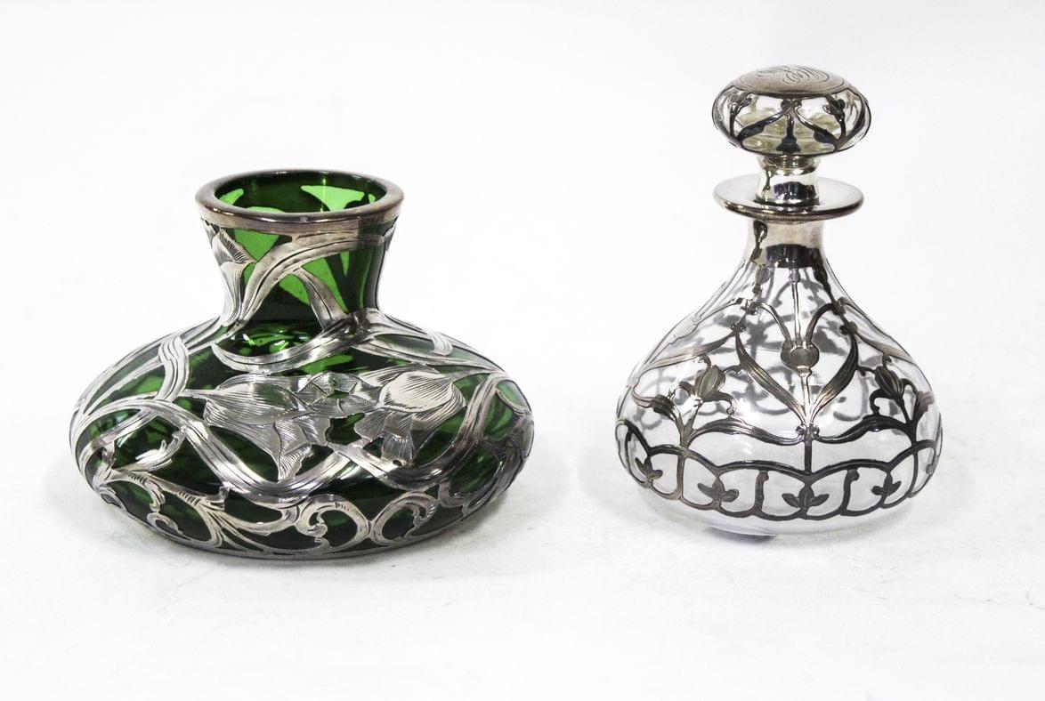 Verre et décor argent, H 10 et 13 cm