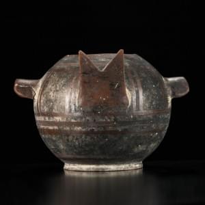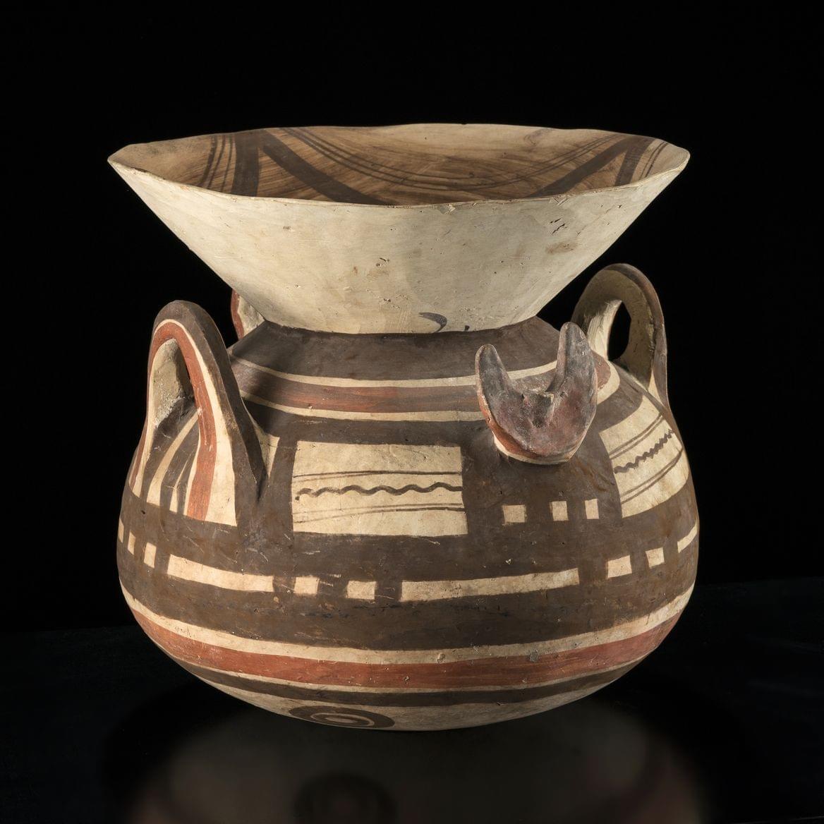 Terre cuite à décor de motifs géométriques, H 17,5 et 25,5 cm. Provenance: collection privée suisse